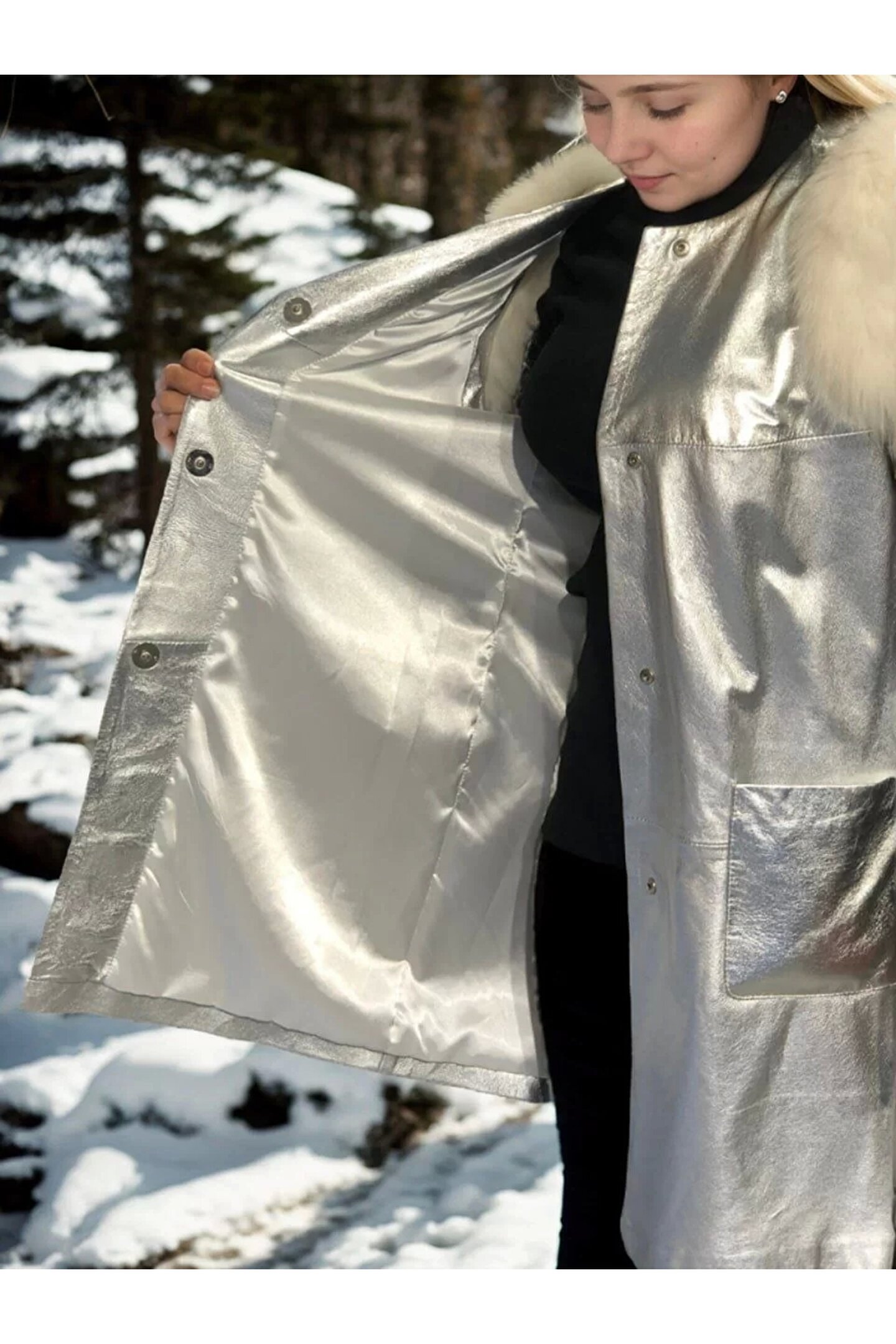 Silerra Kadın Kolsuz Hakiki Deri Kürk - Gri