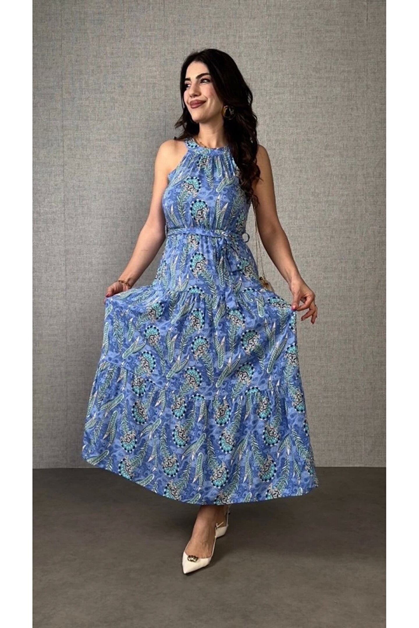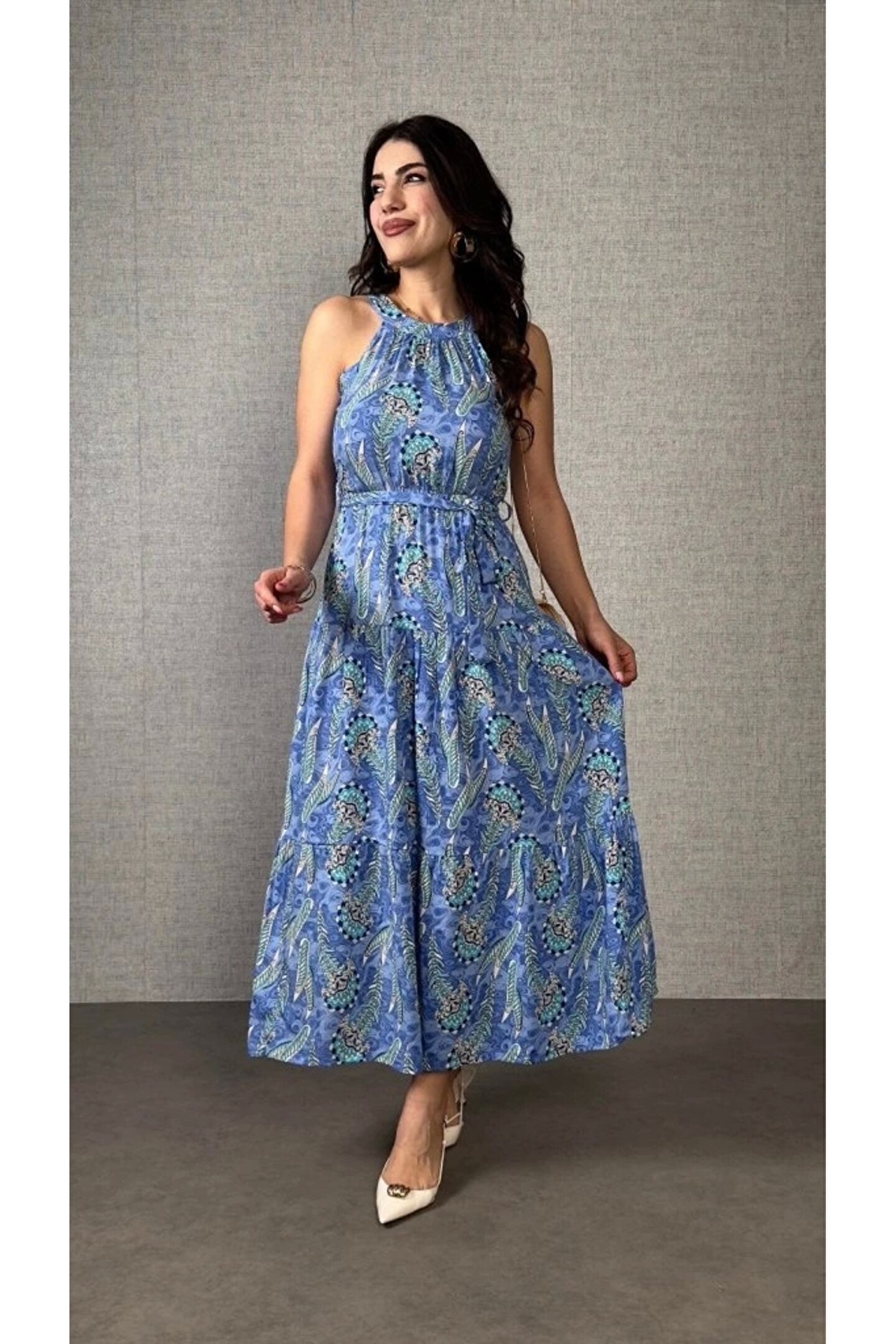 Silerra Kadın Omuzlardan Açık Boyundan Geçmeli Desenli Süprem Bluz