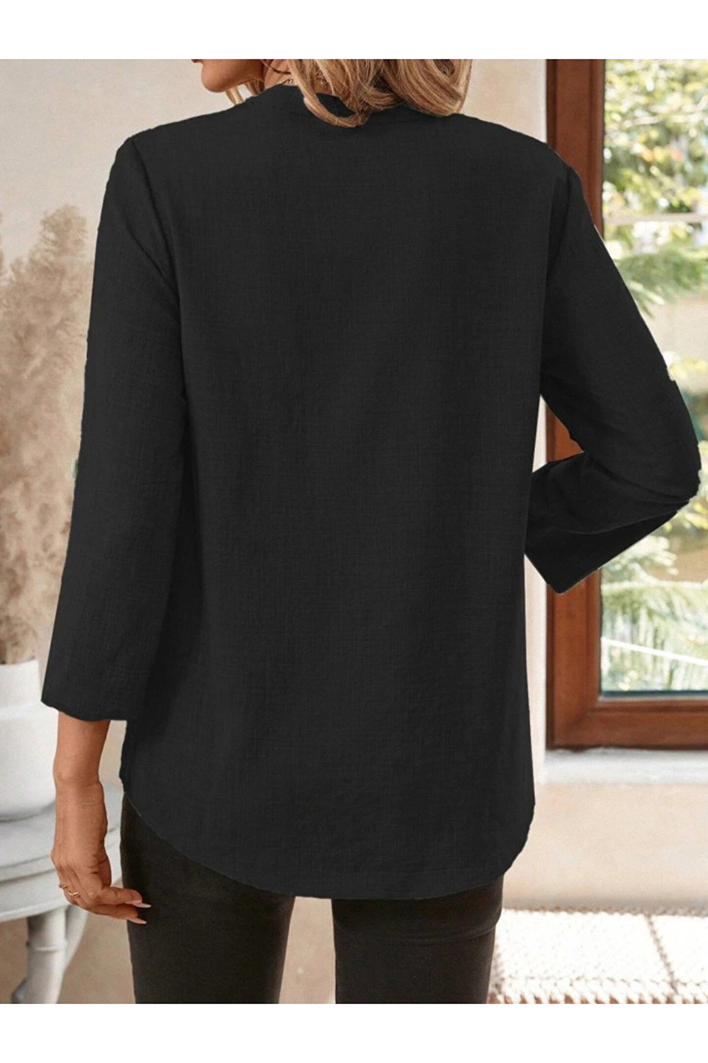 Kadın Truvakar Kol V Yakalı Keten Bluz