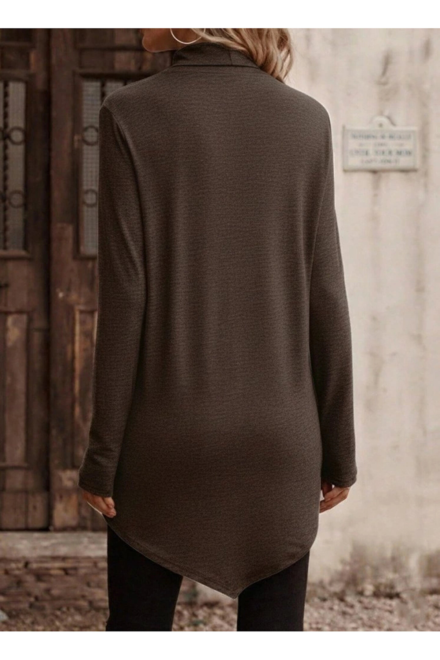 Kadın Uzun Kollu Balıkçı Yaka Asimetrik Kesim Detaylı Yün Viskon Bluz