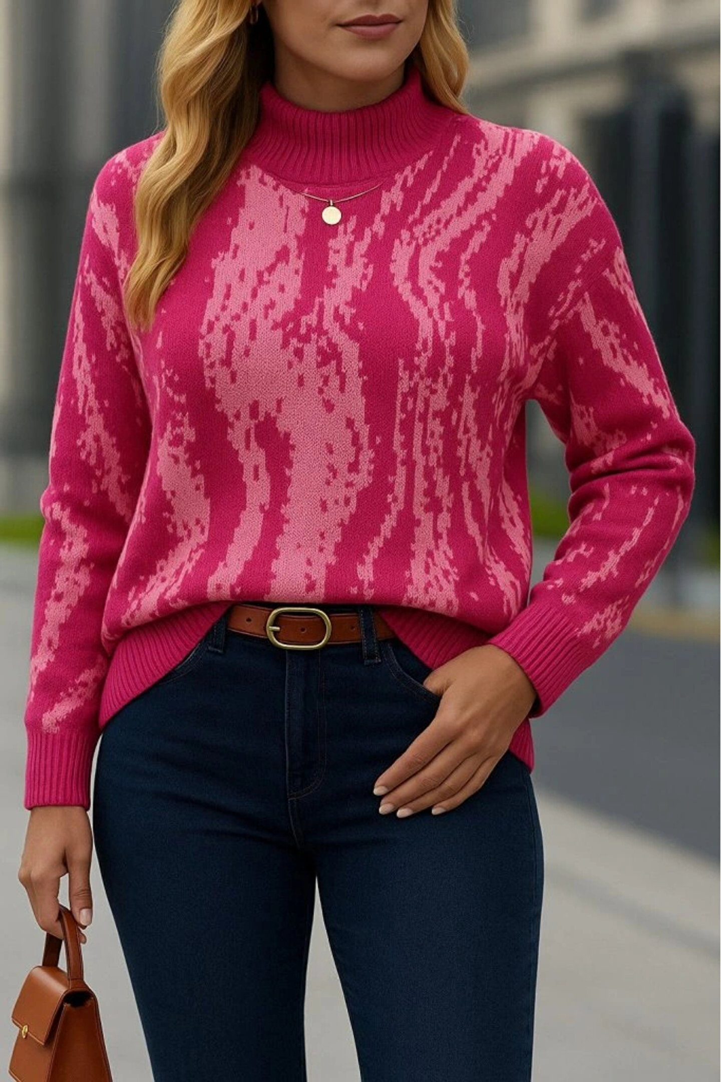 Kadın Uzun Kollu Balıkçı Yaka çok Renkli Triko Bluz