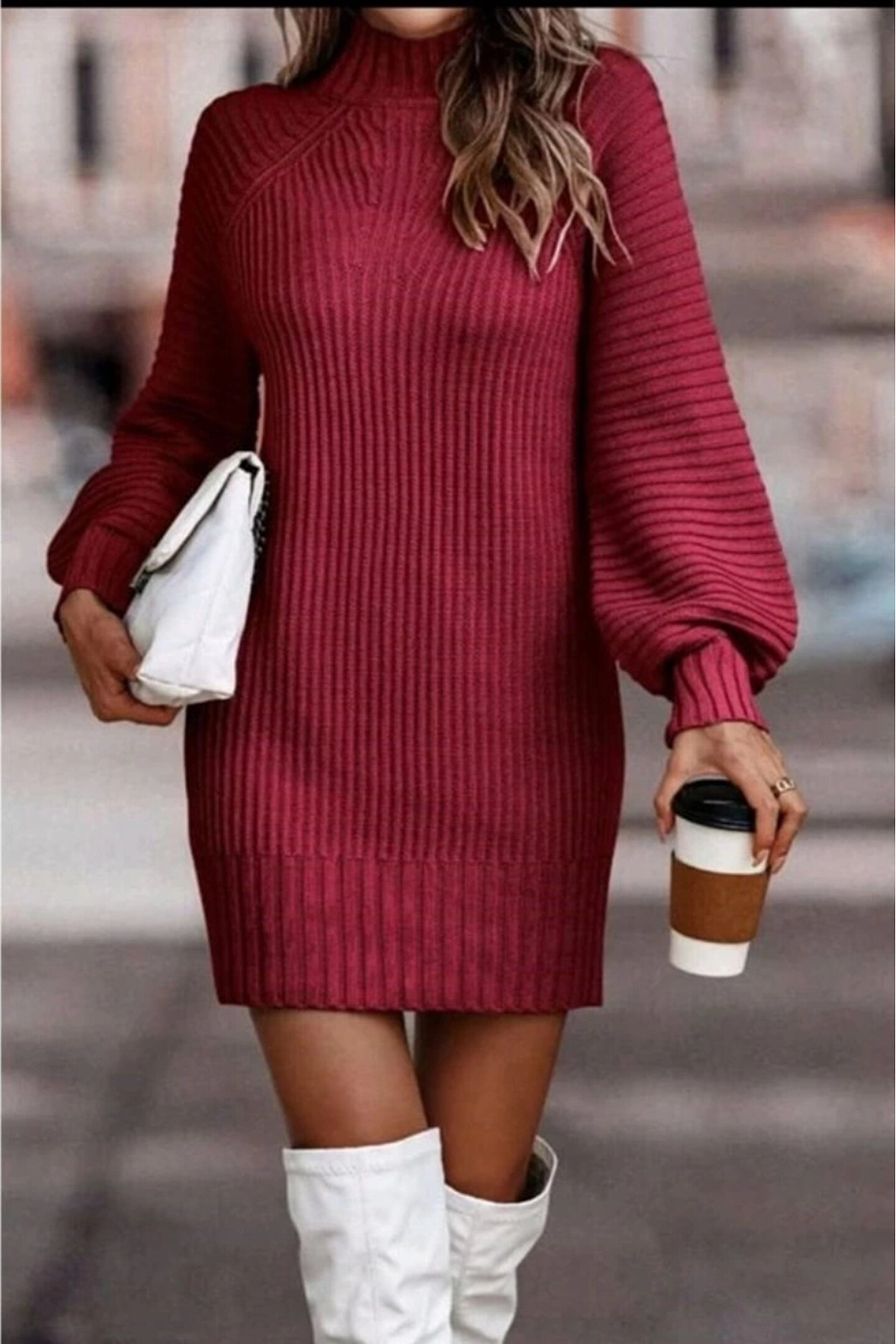 Kadın Uzun Kollu Balıkçı Yaka Mini Triko Elbise