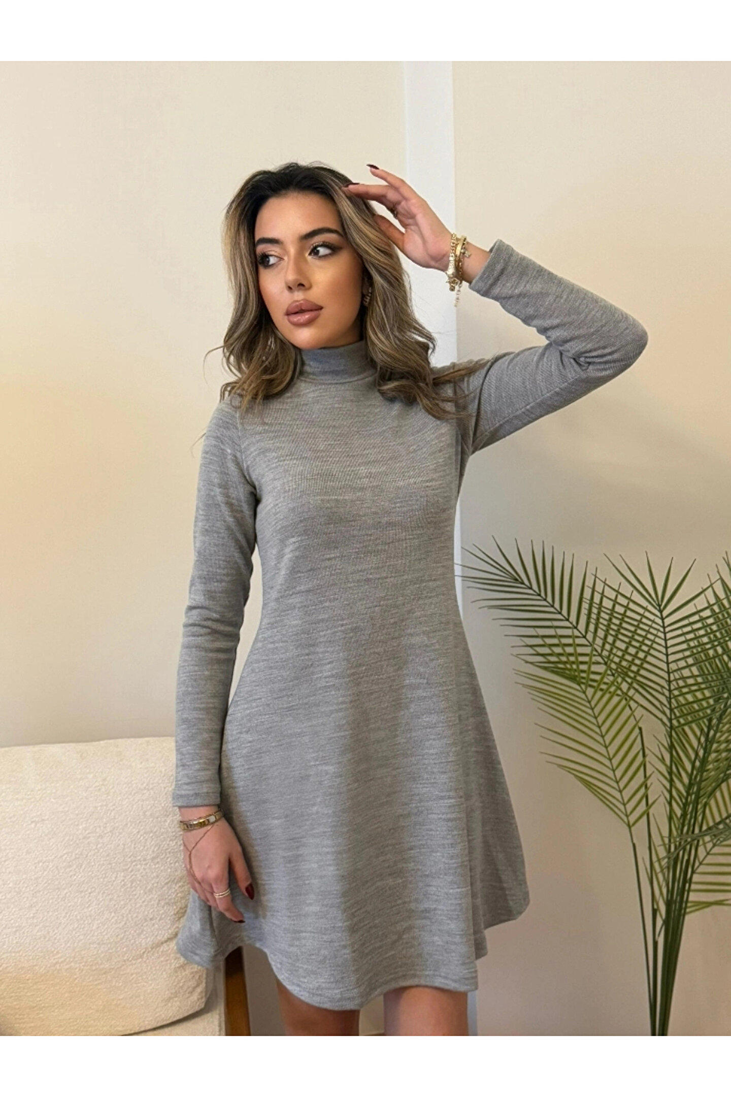 Kadın Uzun Kollu Balıkçı Yaka Salaş Kusa Akrilik Elbise