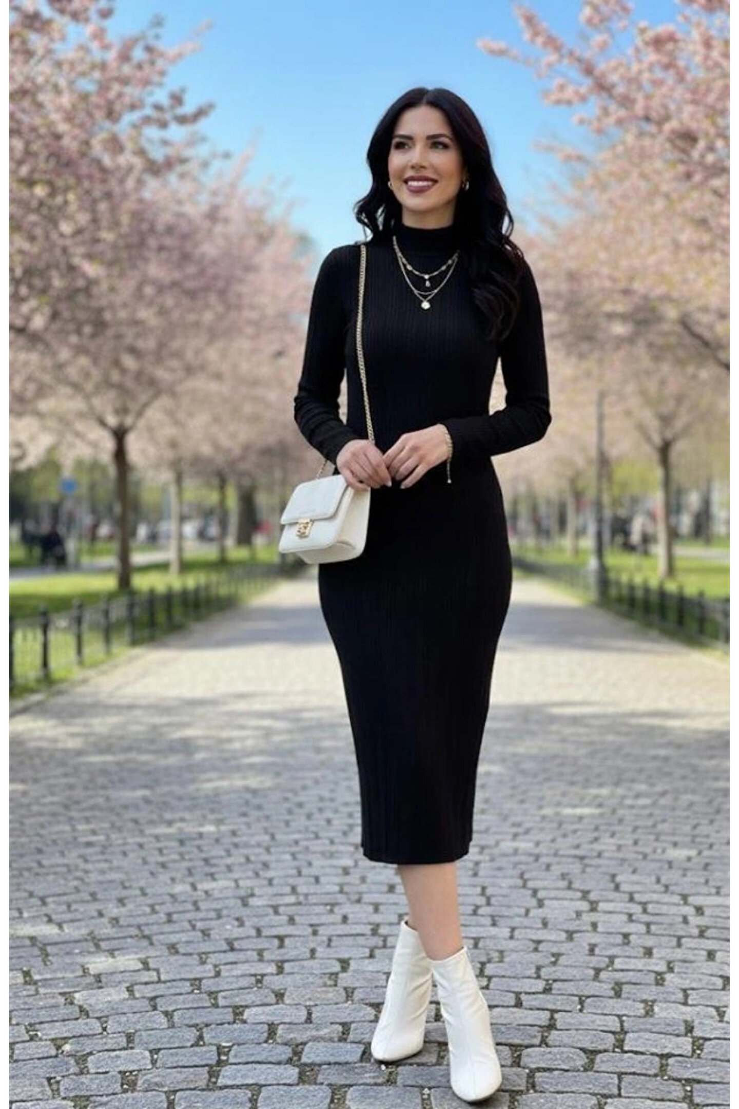 Kadın Uzun Kollu Balıkçı Yaka Triko Elbise