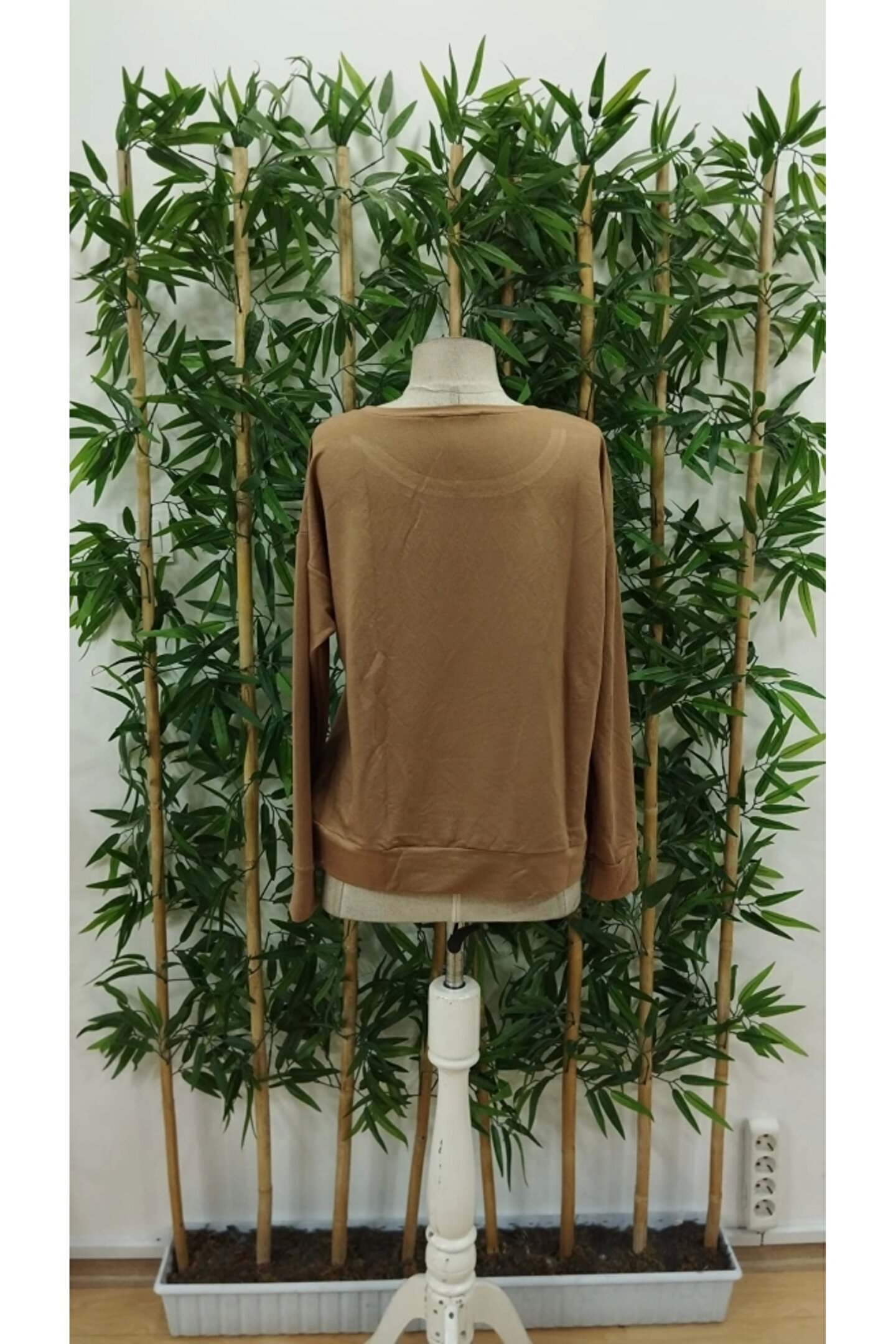 Kadın Uzun Kollu Bisiklet Yaka Desenli Viskon Iki Iplik Bluz