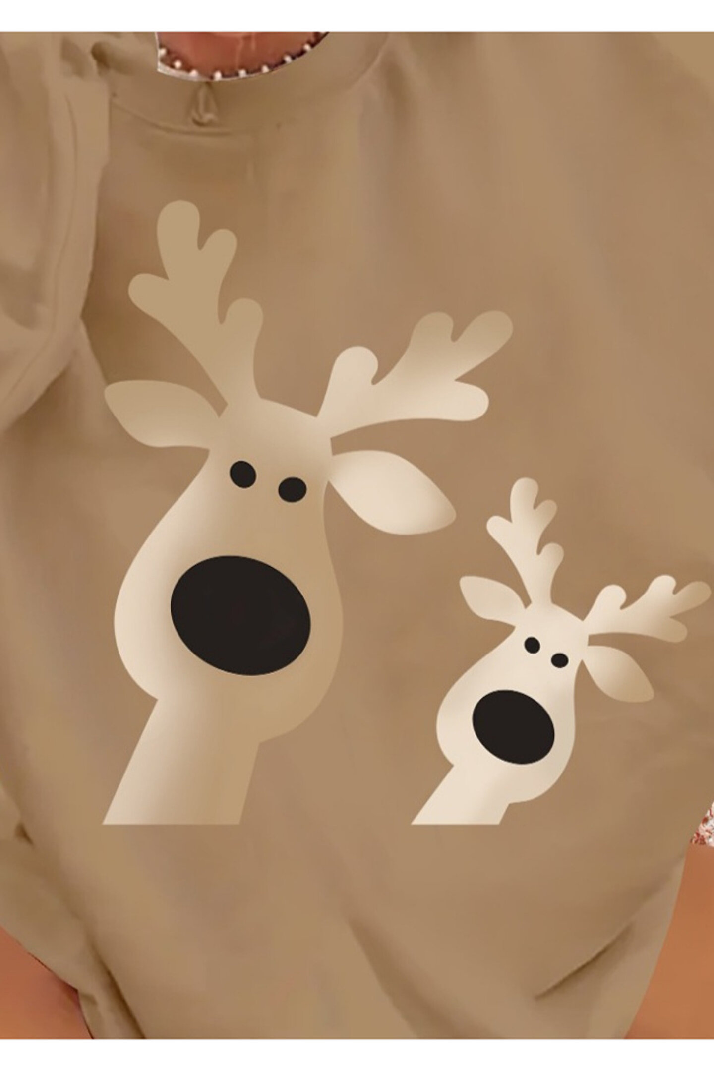 Kadın Uzun Kollu Bisiklet Yaka Geyik Desenli Viskon Iki Iplik Bluz