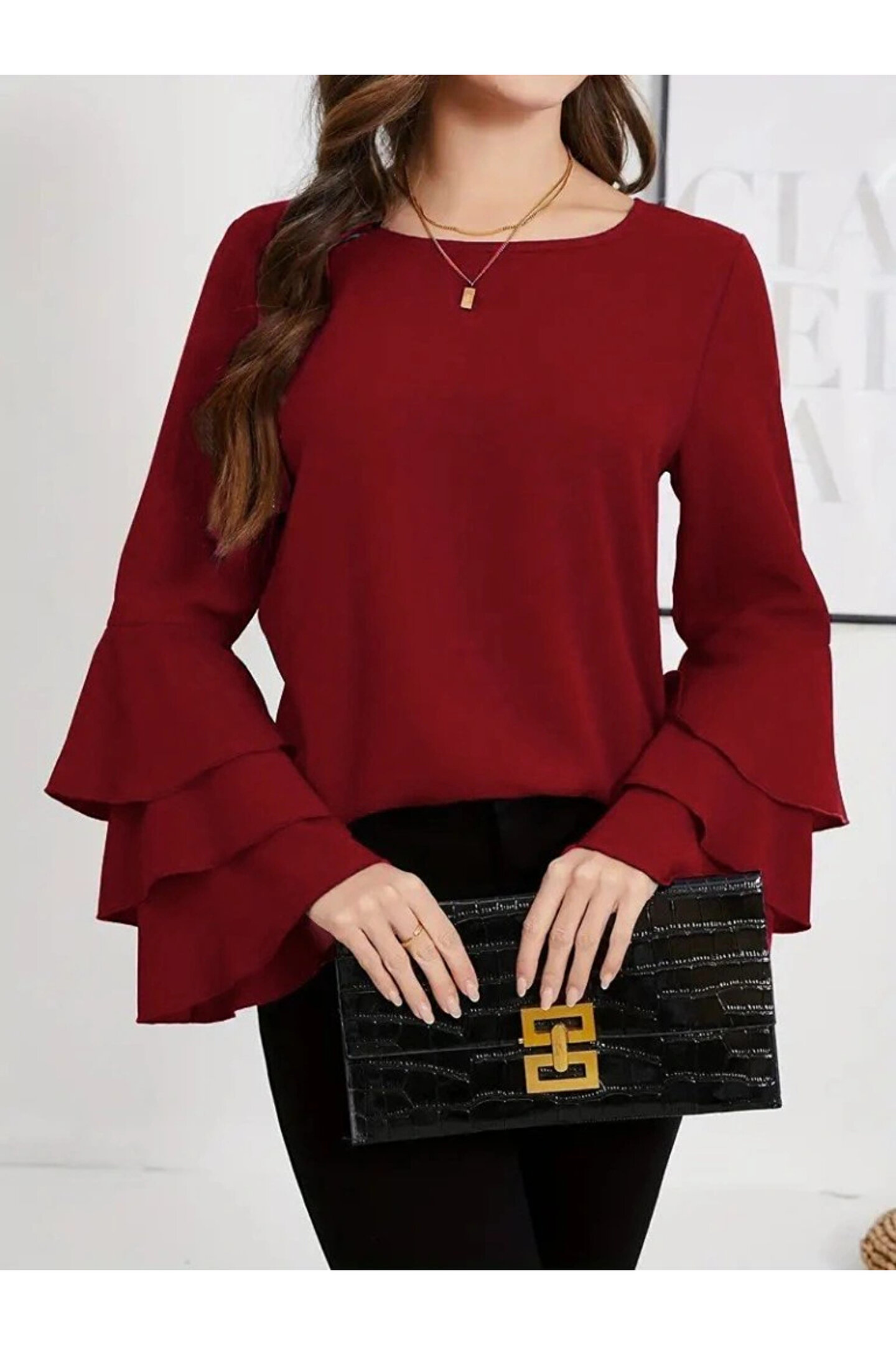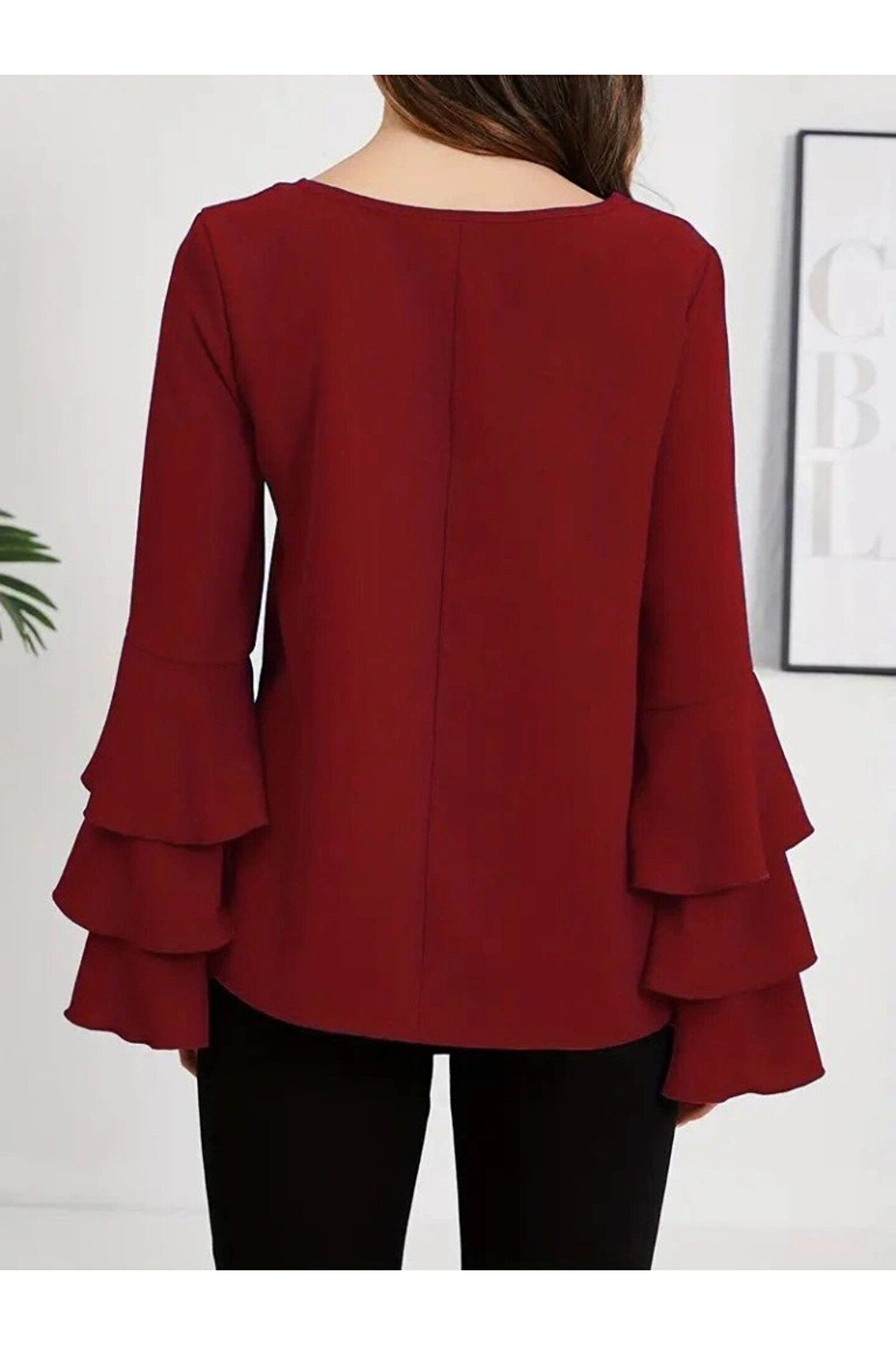 Kadın Uzun Kollu Bisiklet Yaka Kollar İspanyol Volanlı Sandy Bluz