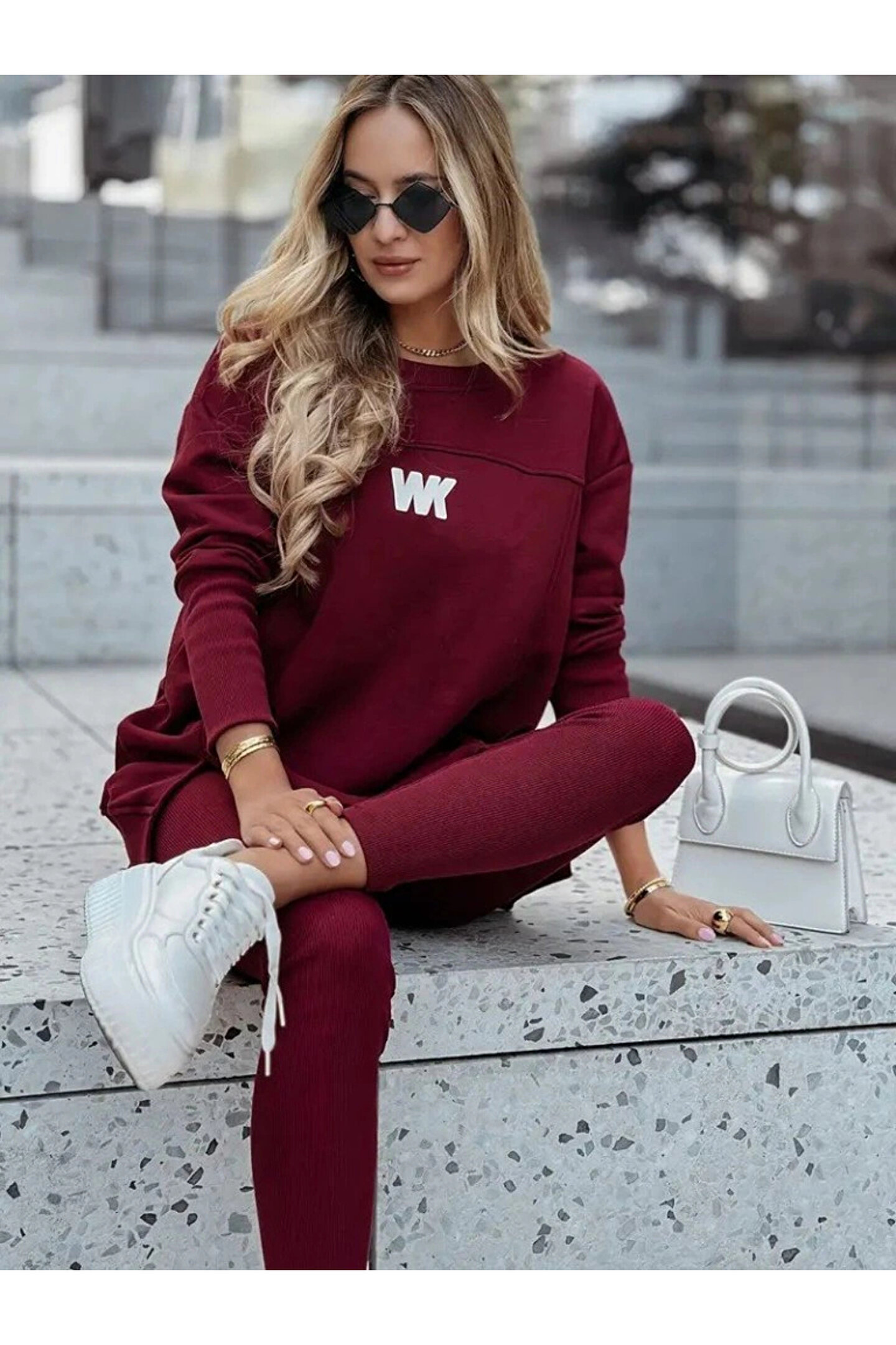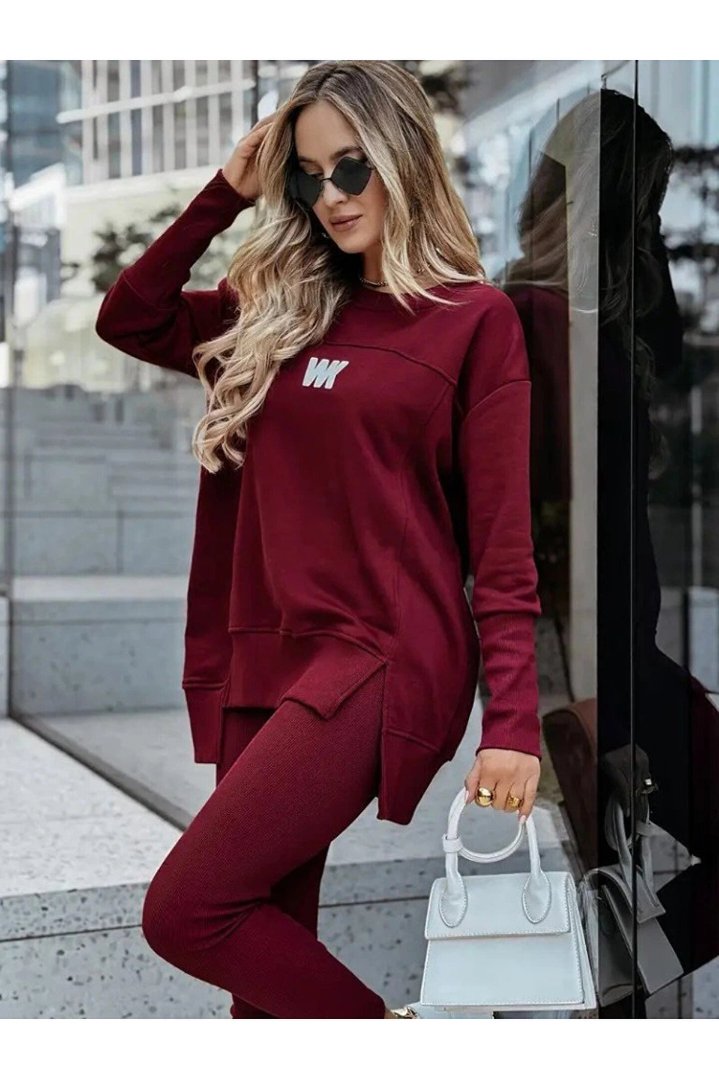 Kadın Uzun Kollu Bisiklet Yaka Nervurlu Viskon Iki Iplik Ve Tayt Pantolon Ikili Takım