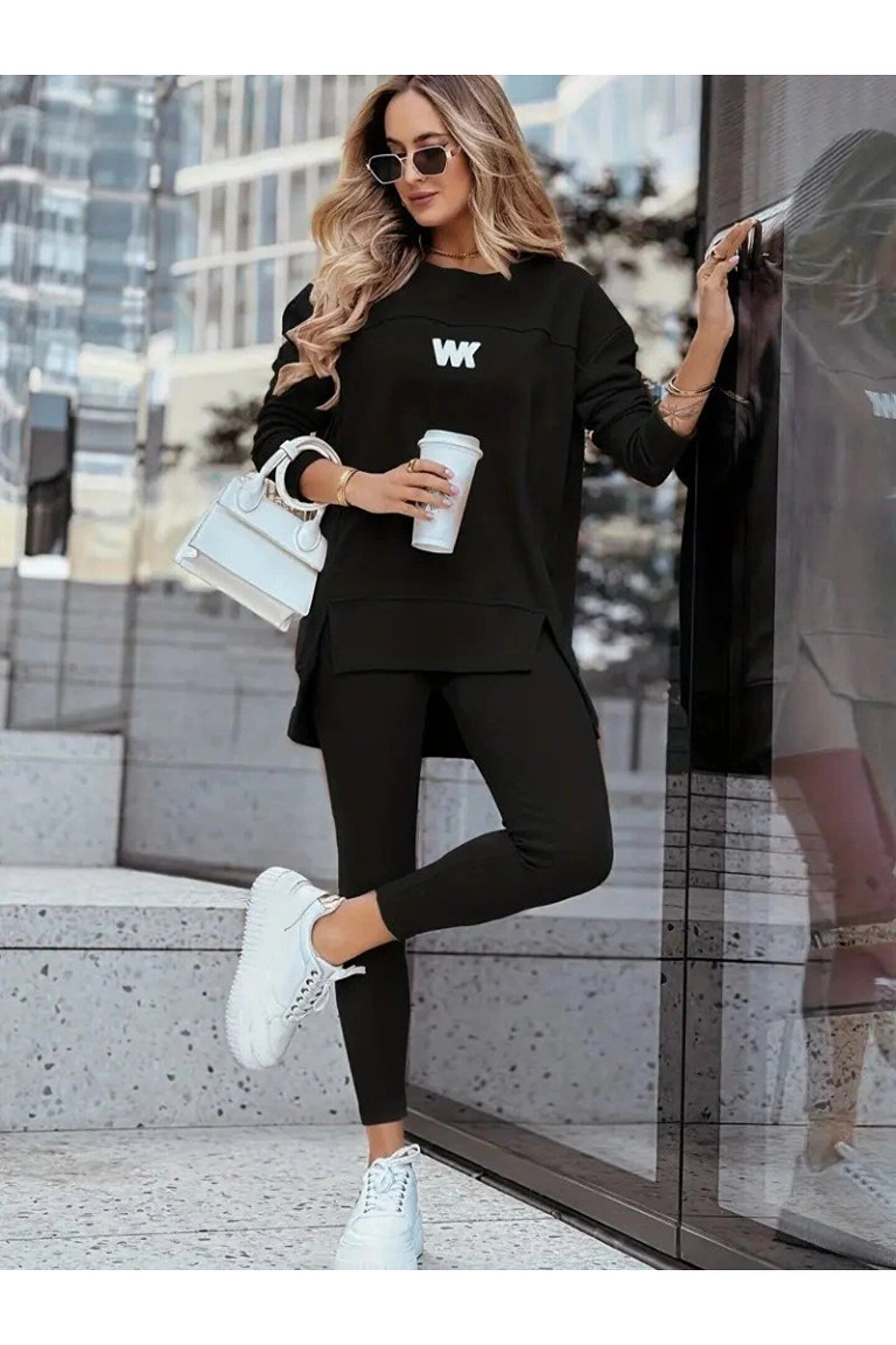 Kadın Uzun Kollu Bisiklet Yaka Nervurlu Viskon Iki Iplik Ve Tayt Pantolon Ikili Takım