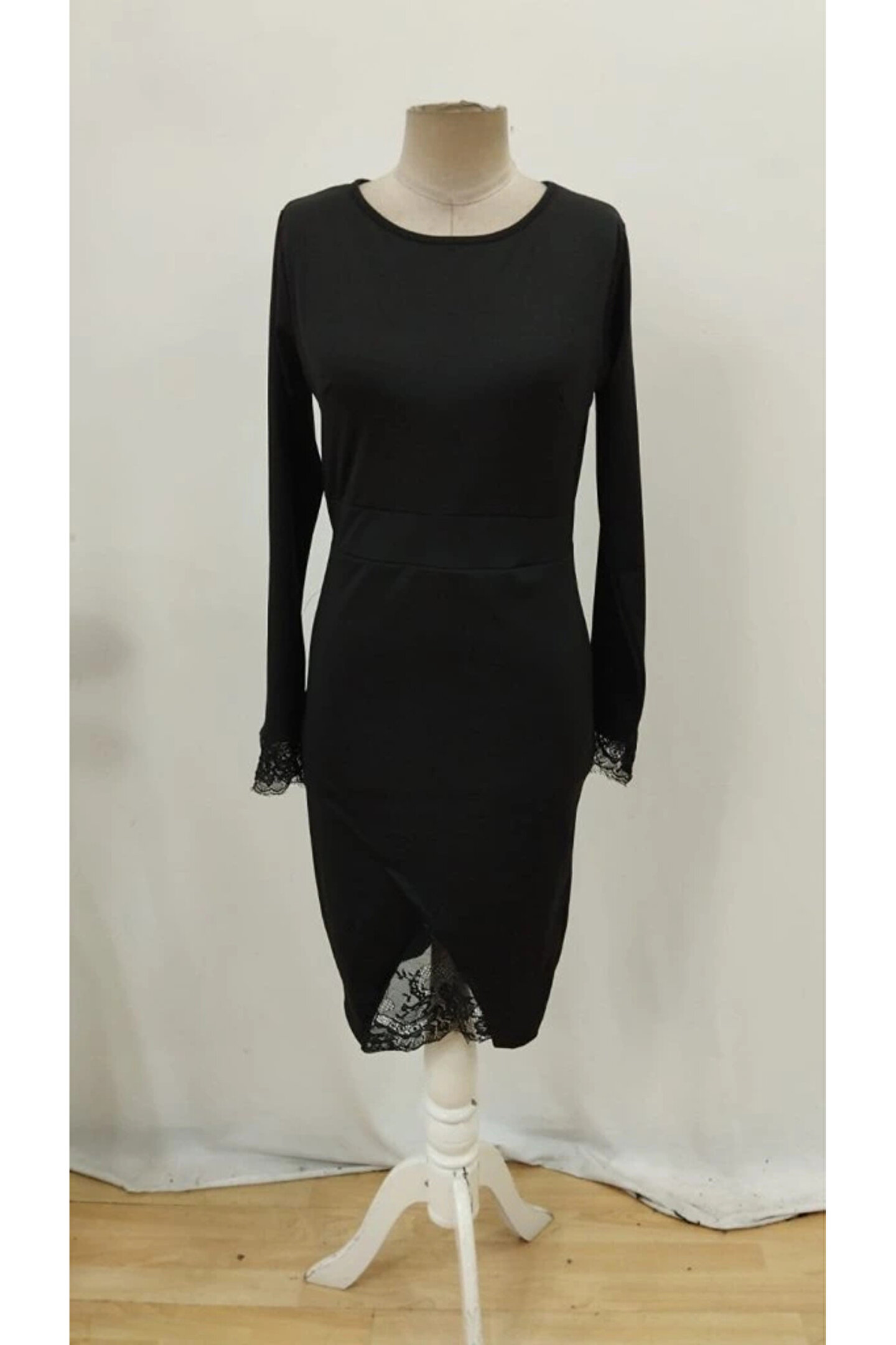 Kadın Uzun Kollu Bisiklet Yaka önden Dantel Ve Yırtmaç Detaylı Dalgıç Elbise