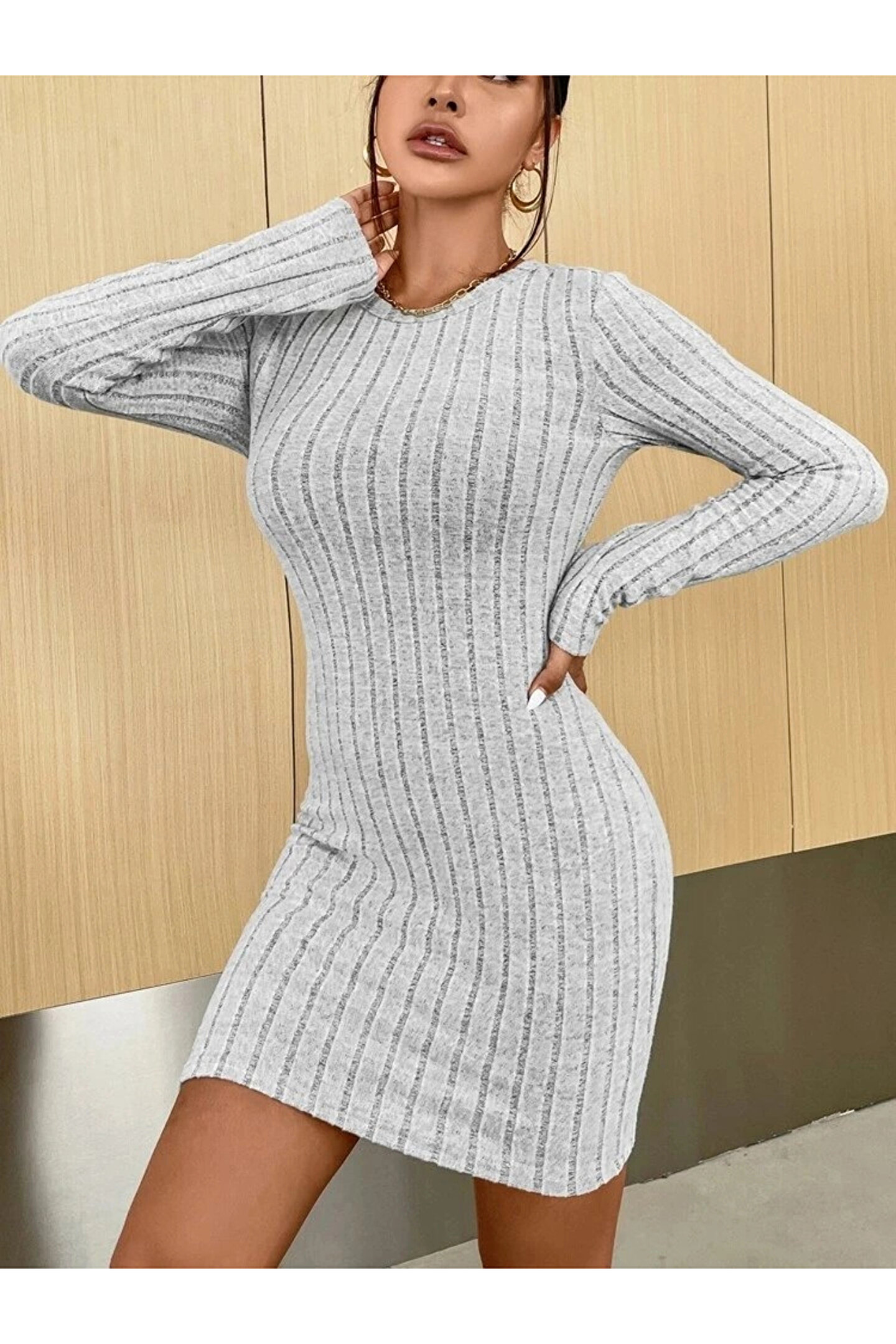 Silerra Kadın Uzun Kollu Bisiklet Yaka şardonlu Kalın Fitilli Kaşkorse Mini Boy Elbise