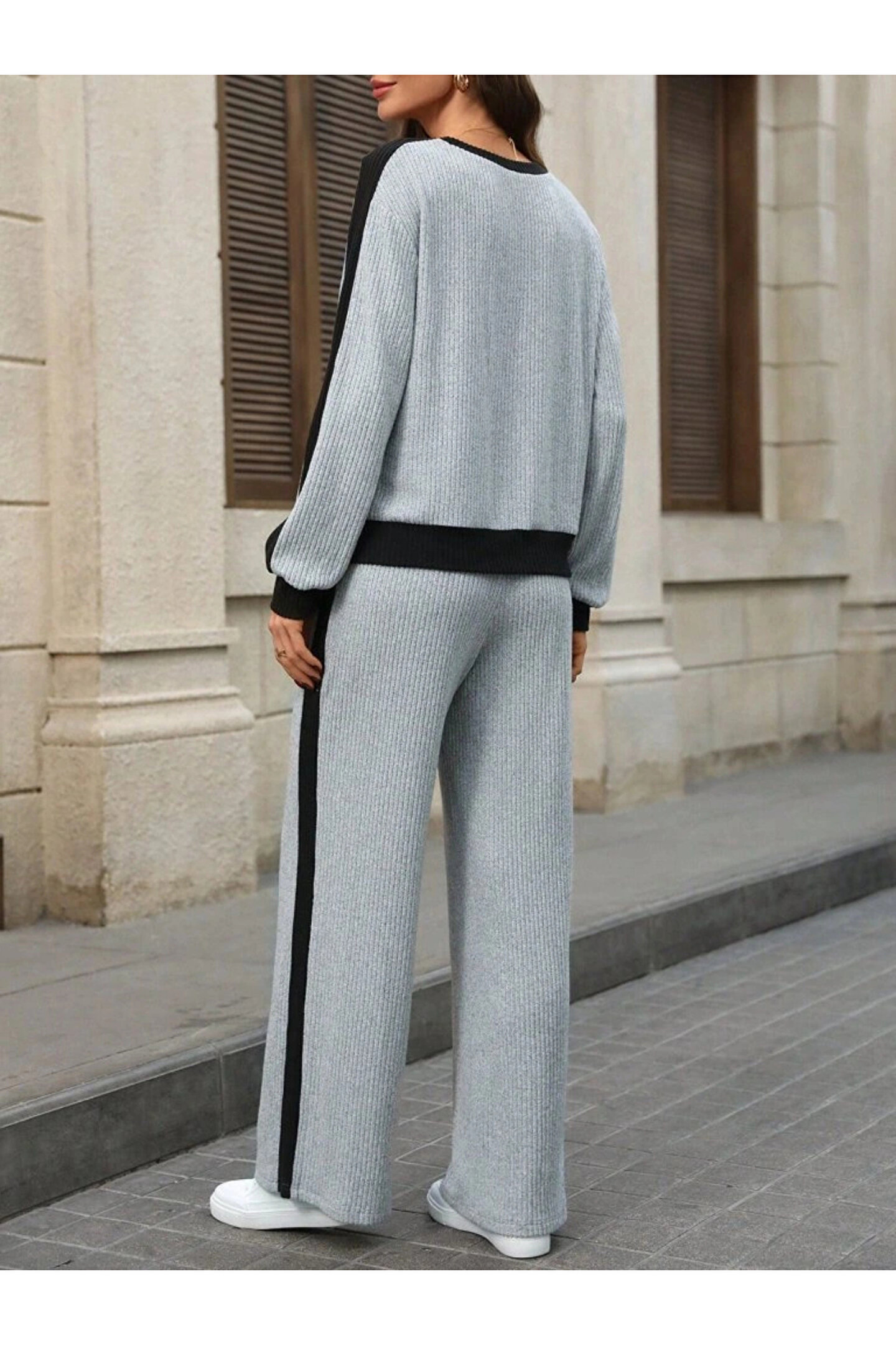 Kadın Uzun Kollu Bisiklet Yaka şardonlu Kaşkorse Bluz Ve Pantolon Ikili Takım