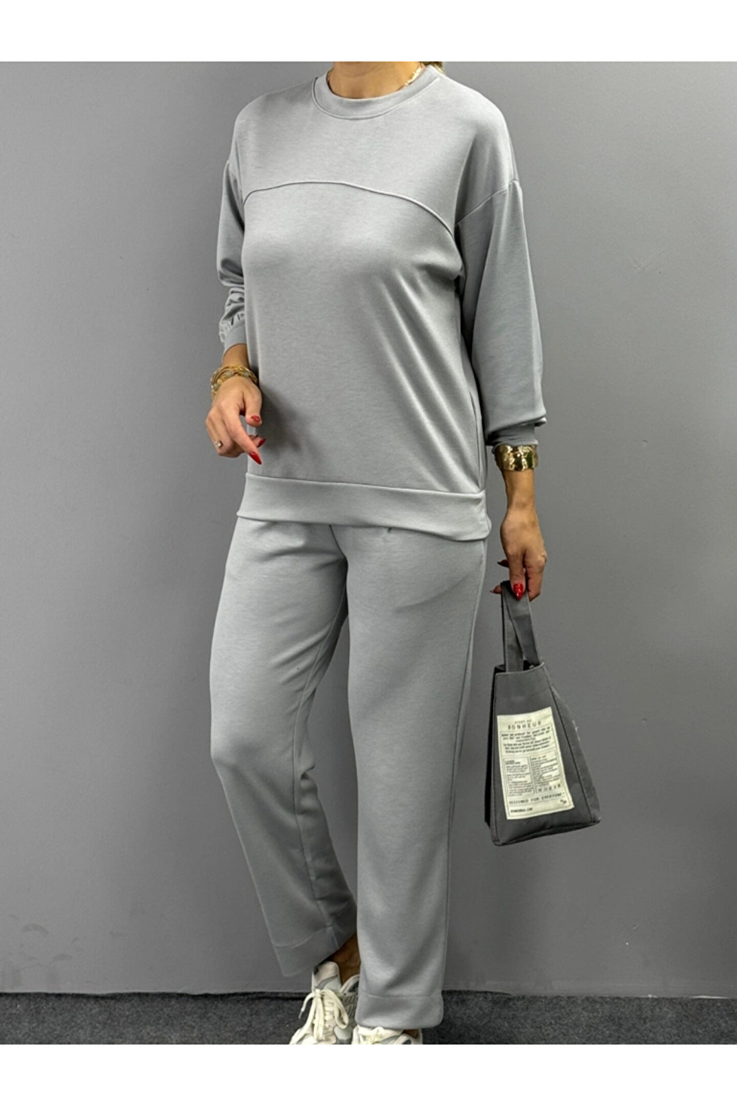 Kadın Uzun Kollu Bisiklet Yaka Viskon Iki Iplik Bluz Ve Pantolon Ikili Takım