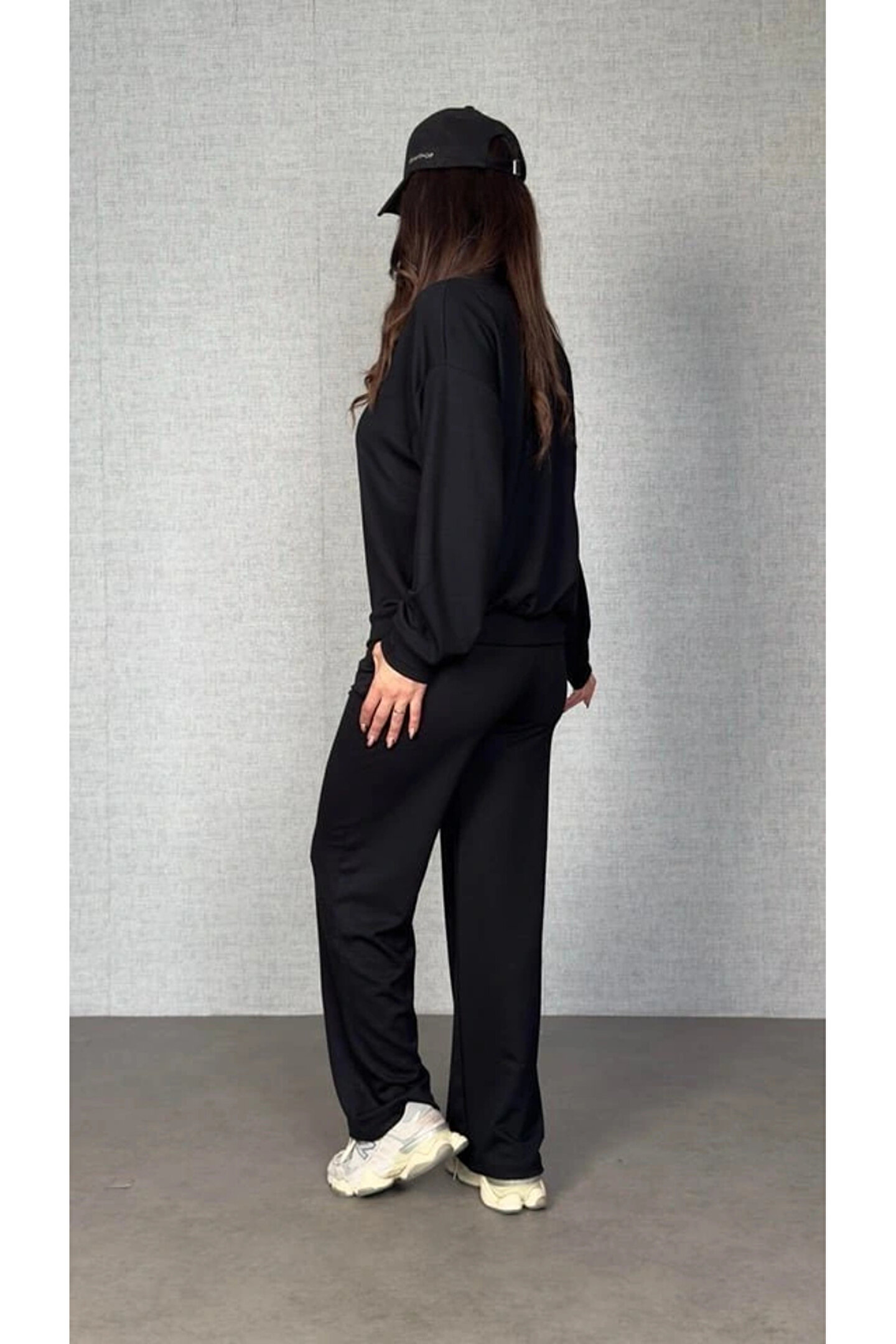 Kadın Uzun Kollu Bisiklet Yaka Viskon Iki Iplik Bluz Ve Pantolon Ikili Takım