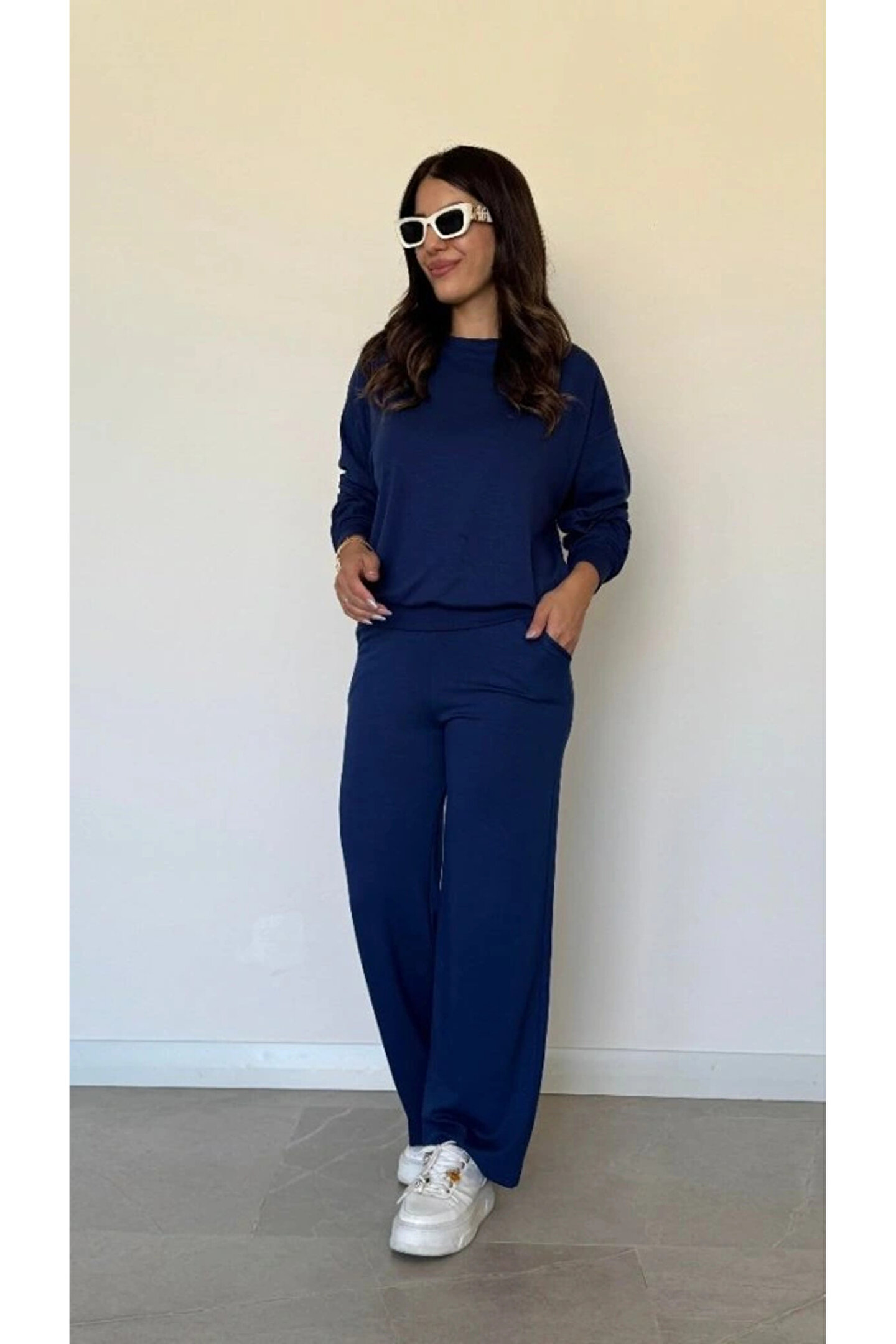 Kadın Uzun Kollu Bisiklet Yaka Viskon Iki Iplik Bluz Ve Pantolon Ikili Takım