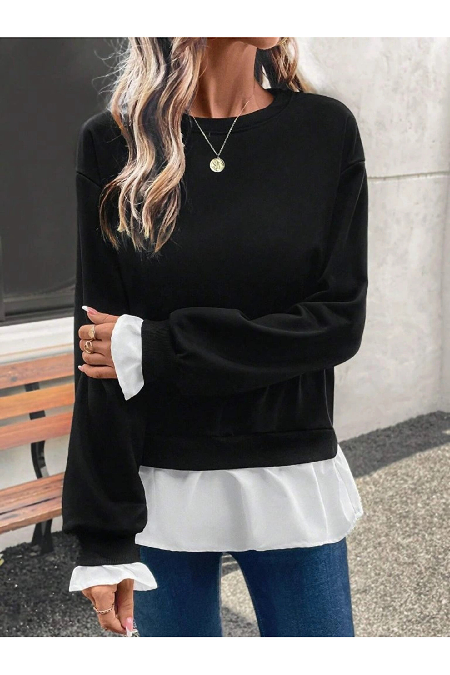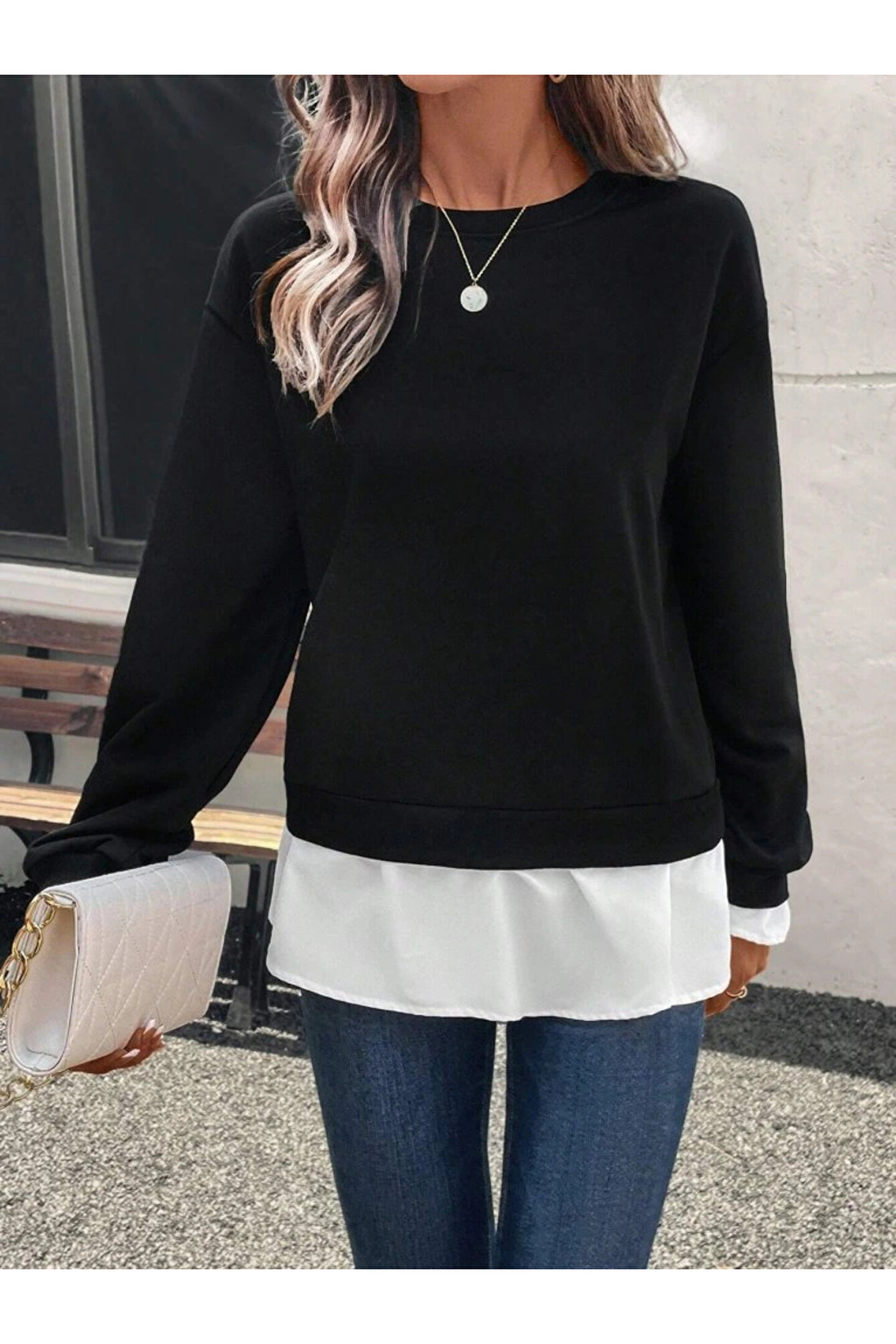Kadın Uzun Kollu Bisiklet Yaka Viskon Iki Iplik Ve Etek Ucu Trikoton Bluz