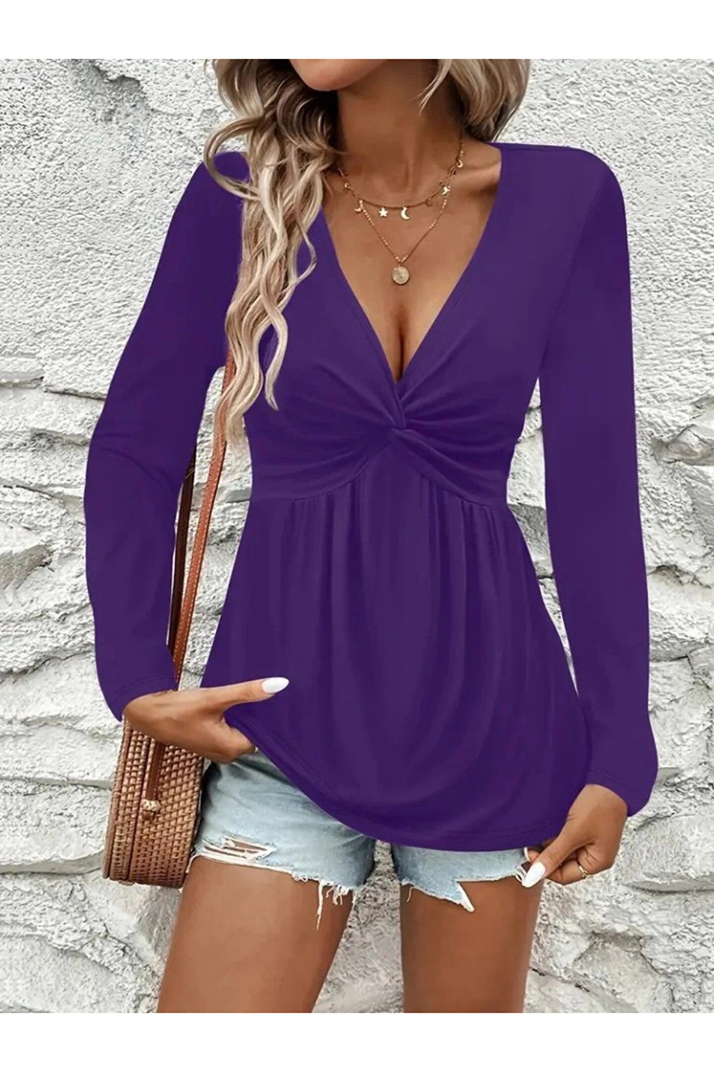 Kadın Uzun Kollu Dekolteli Sarmal Detaylı Viskon Bluz