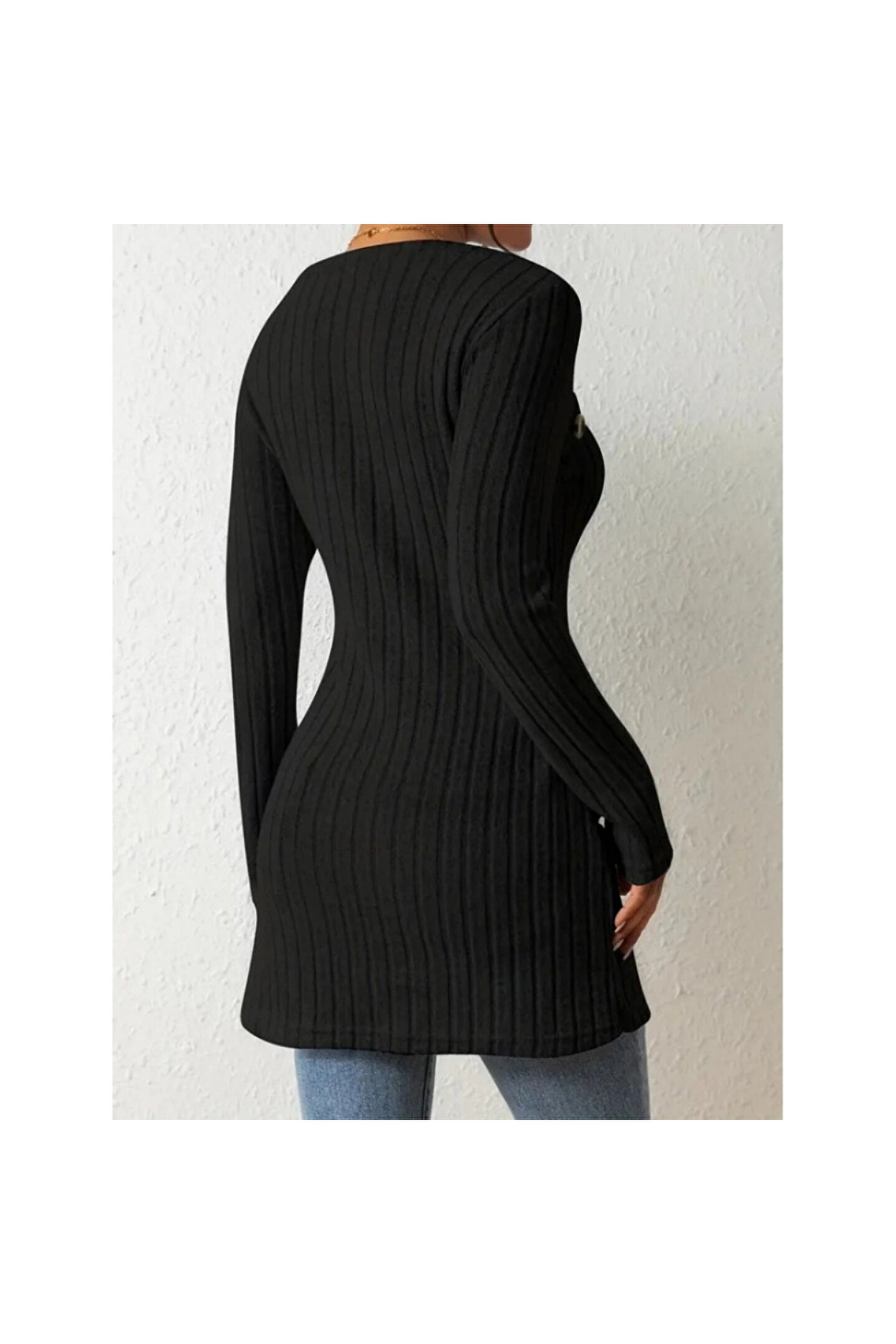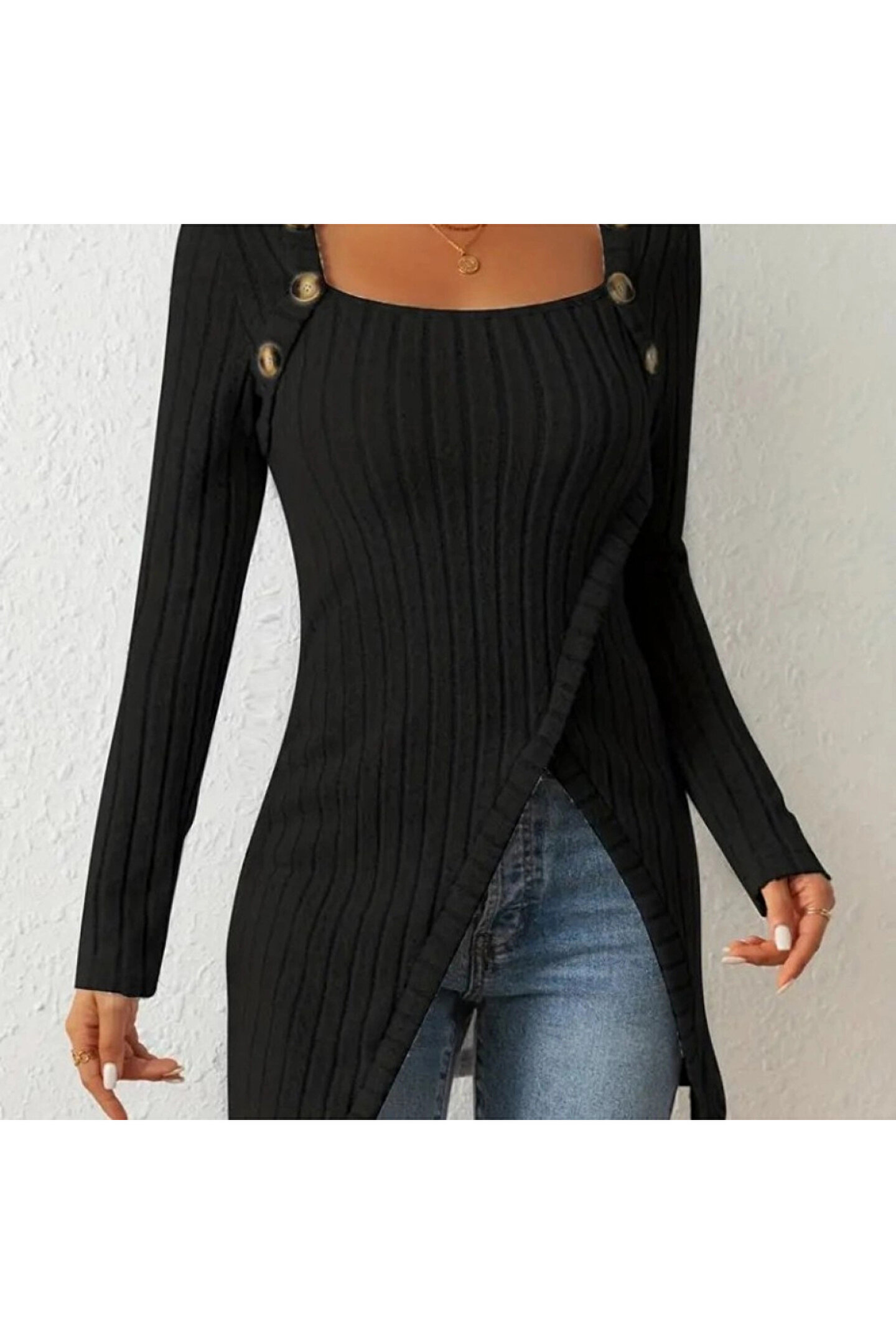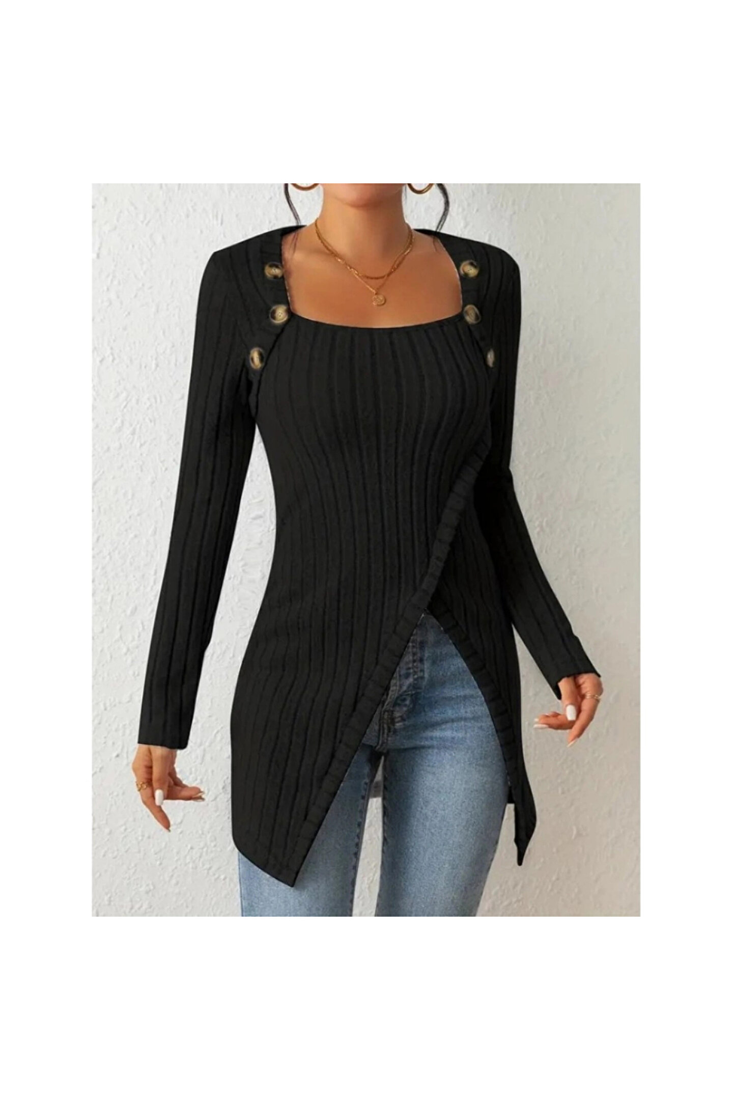 Silerra Kadın Uzun Kollu Derin Kare Yaka Düğme Detay şardonlu Kaşkorse Kruvaze Bluz