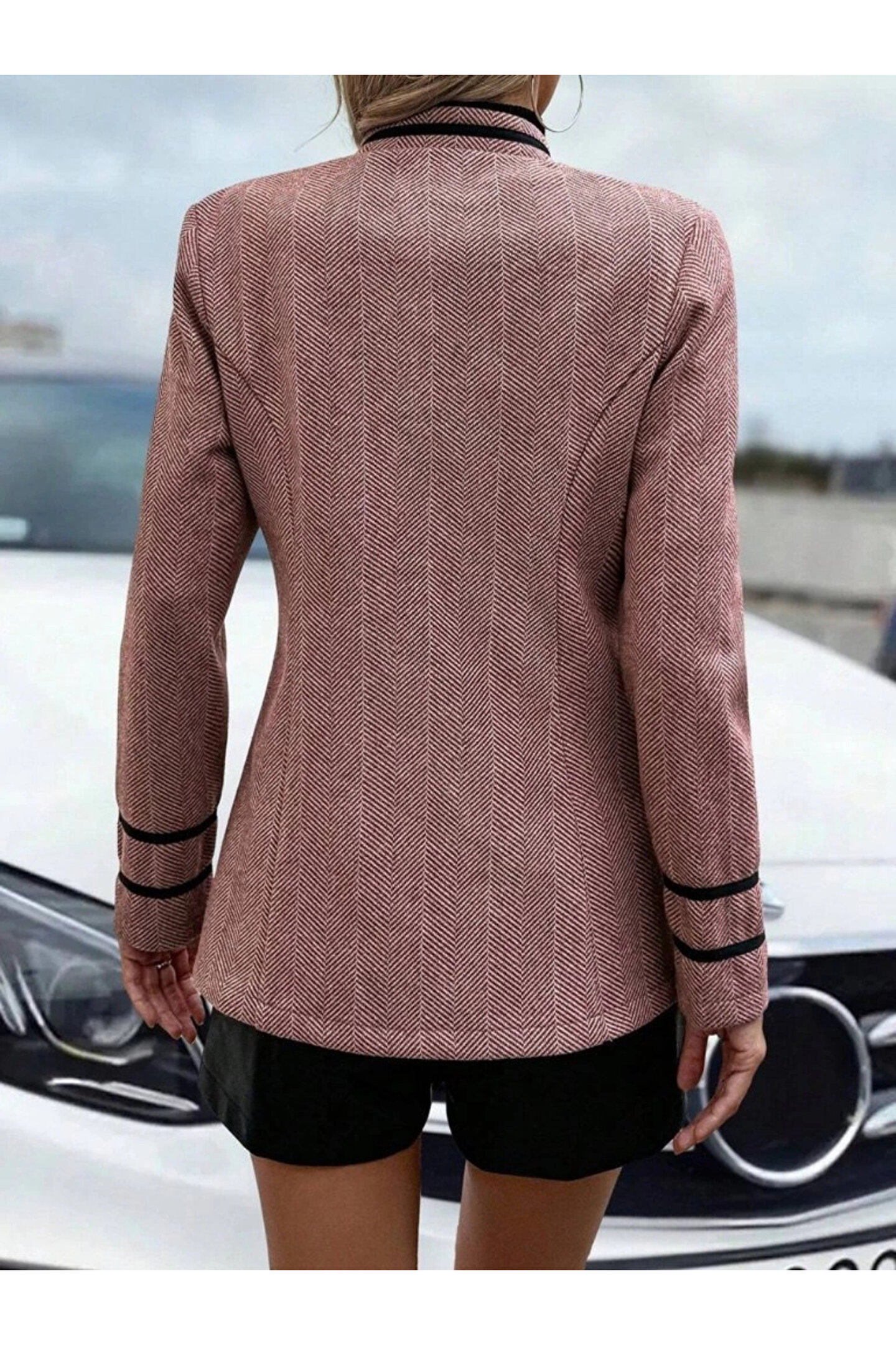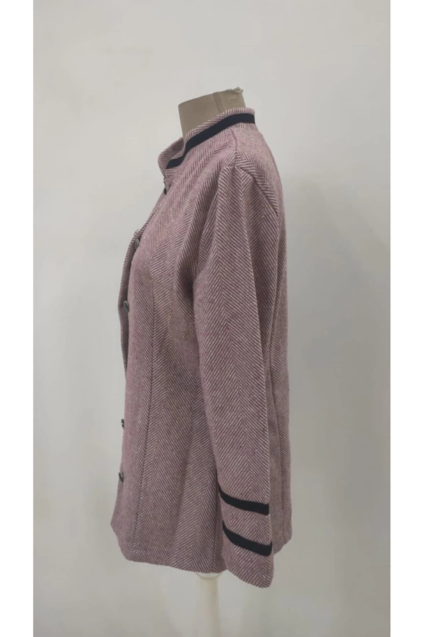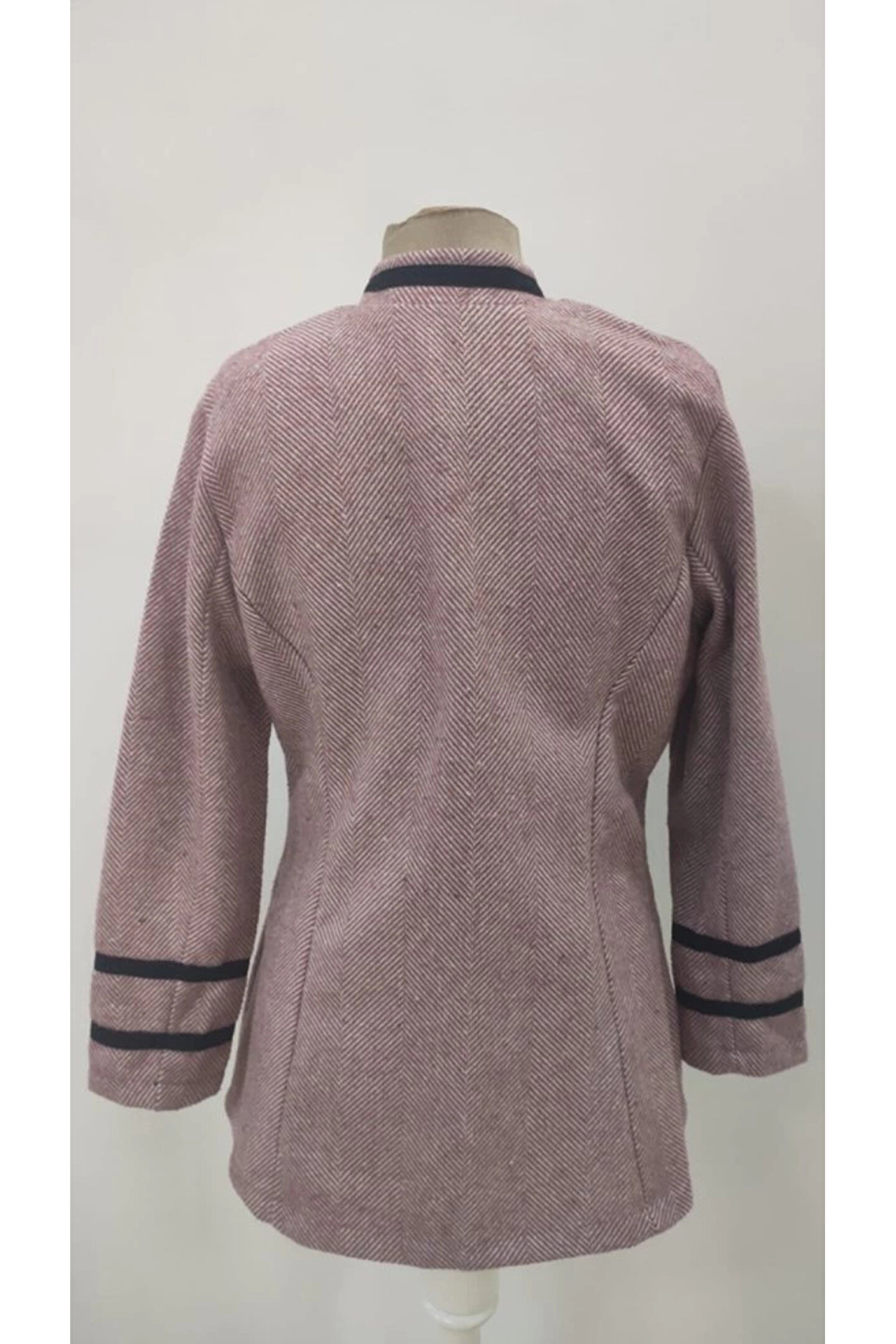 Kadın Uzun Kollu Hakim Yaka Düğme Detaylı Mini Dokuma Ceket