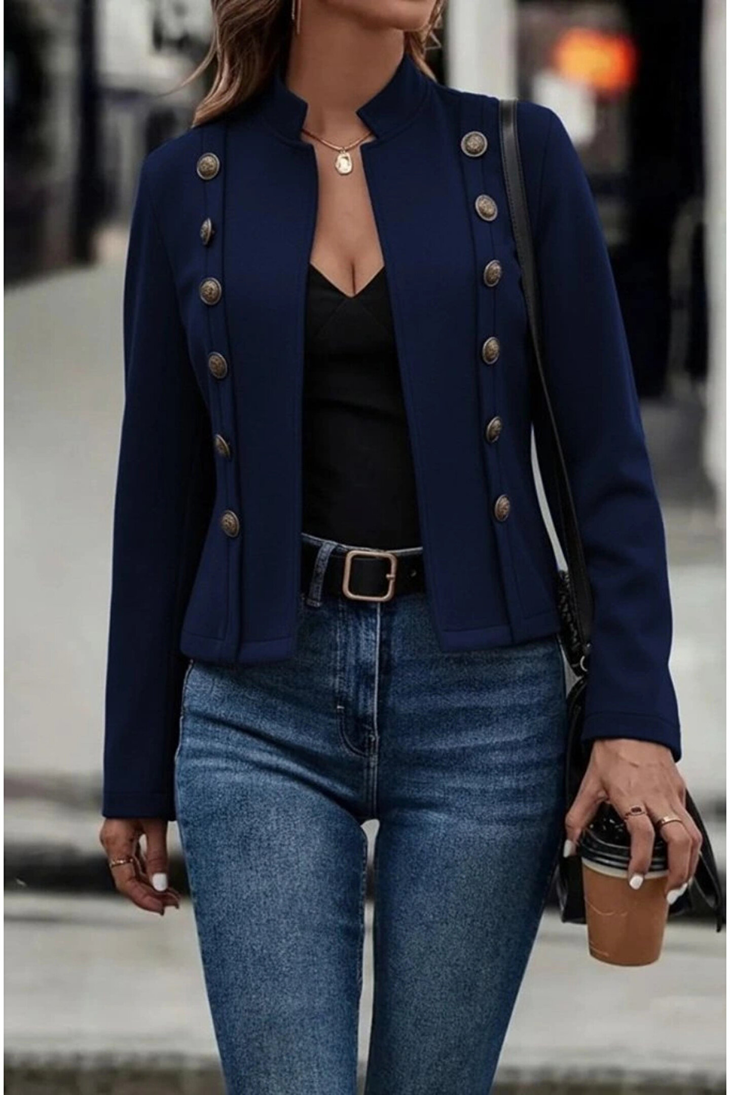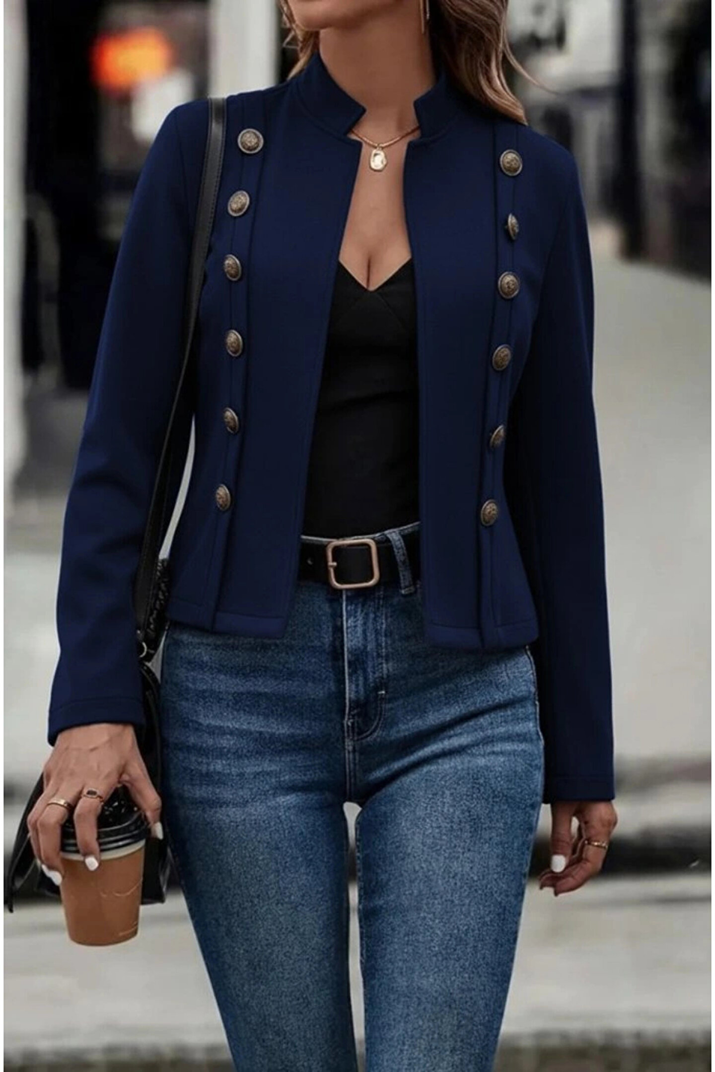 Kadın Uzun Kollu Hakim Yaka Yanlardan Düğmeli Kısa Süet Ceket