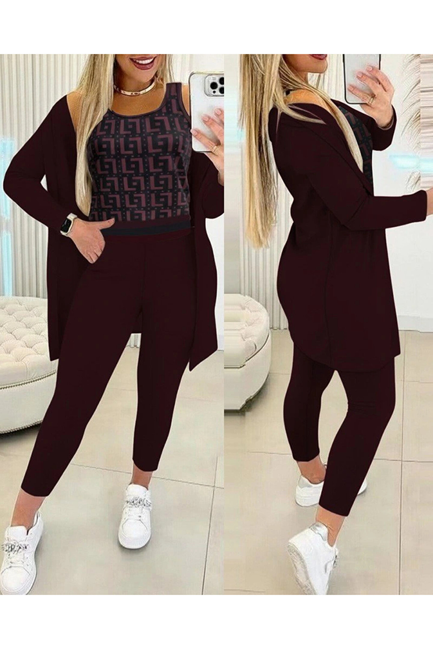 Kadın Uzun Kollu Krep üçlü Takım