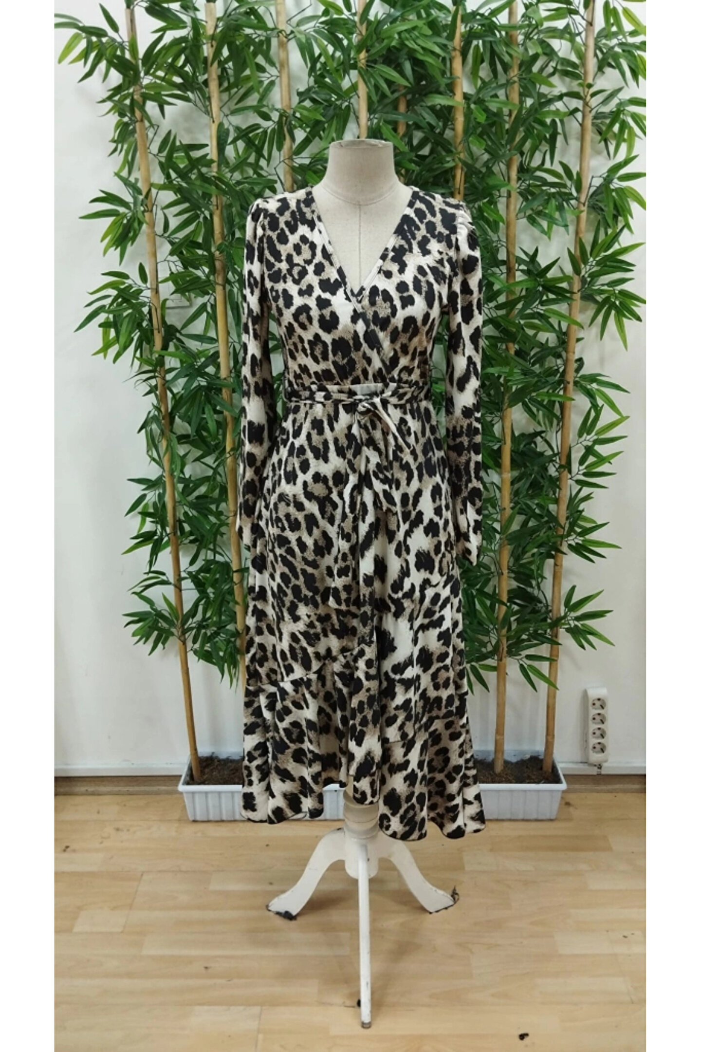Silerra Kadın Uzun Kollu Kruvaze Yakalı Belden Kuşaklı Leopar