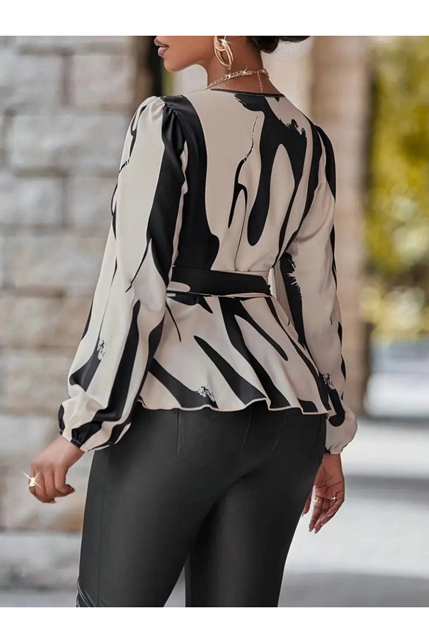 Silerra Kadın Uzun Kollu Kruvaze Yakalı Yandan Bağlamalı Kısa Beli Kuşaklı Modal Bluz