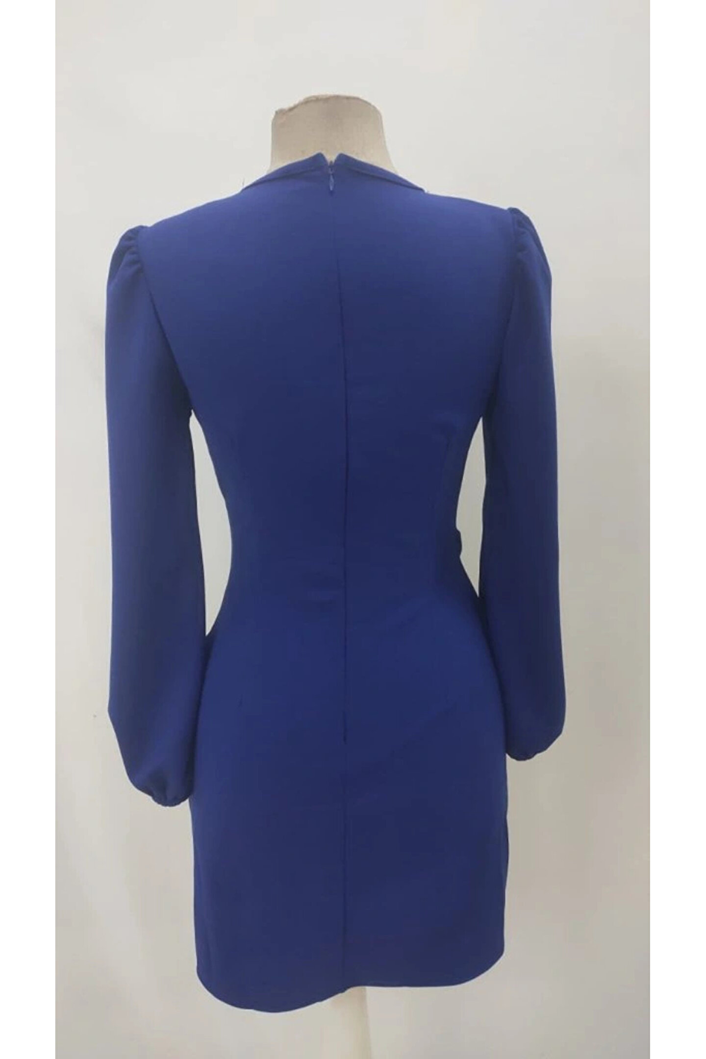 Kadın Uzun Kollu Kruvaze Yakalı Yanlardan Büzgü Detaylı Ithal Krep Kısa Elbise
