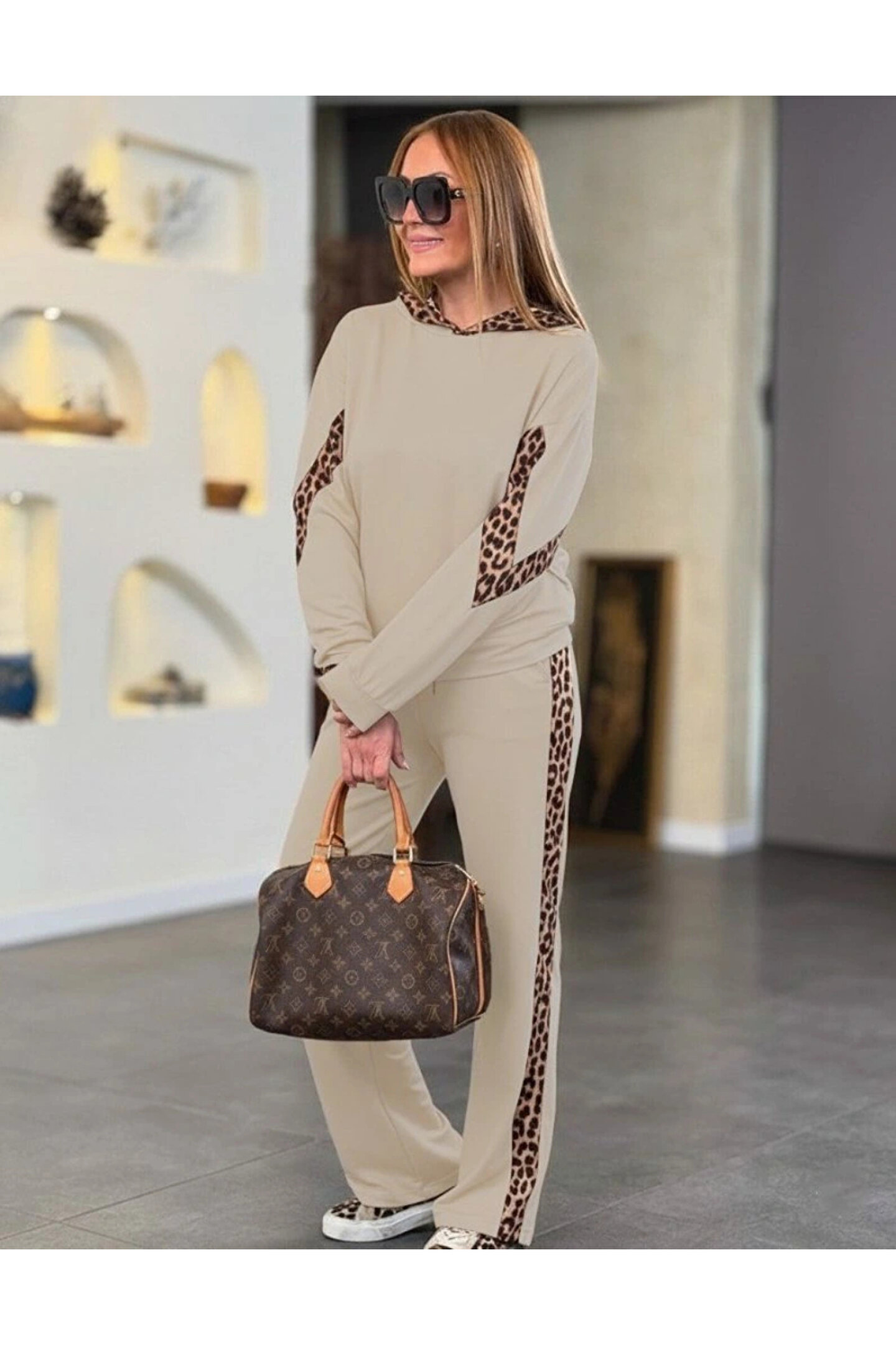 Kadın Uzun Kollu Leopar Detaylı Viskon Iki Iplik Eşofman Takımı