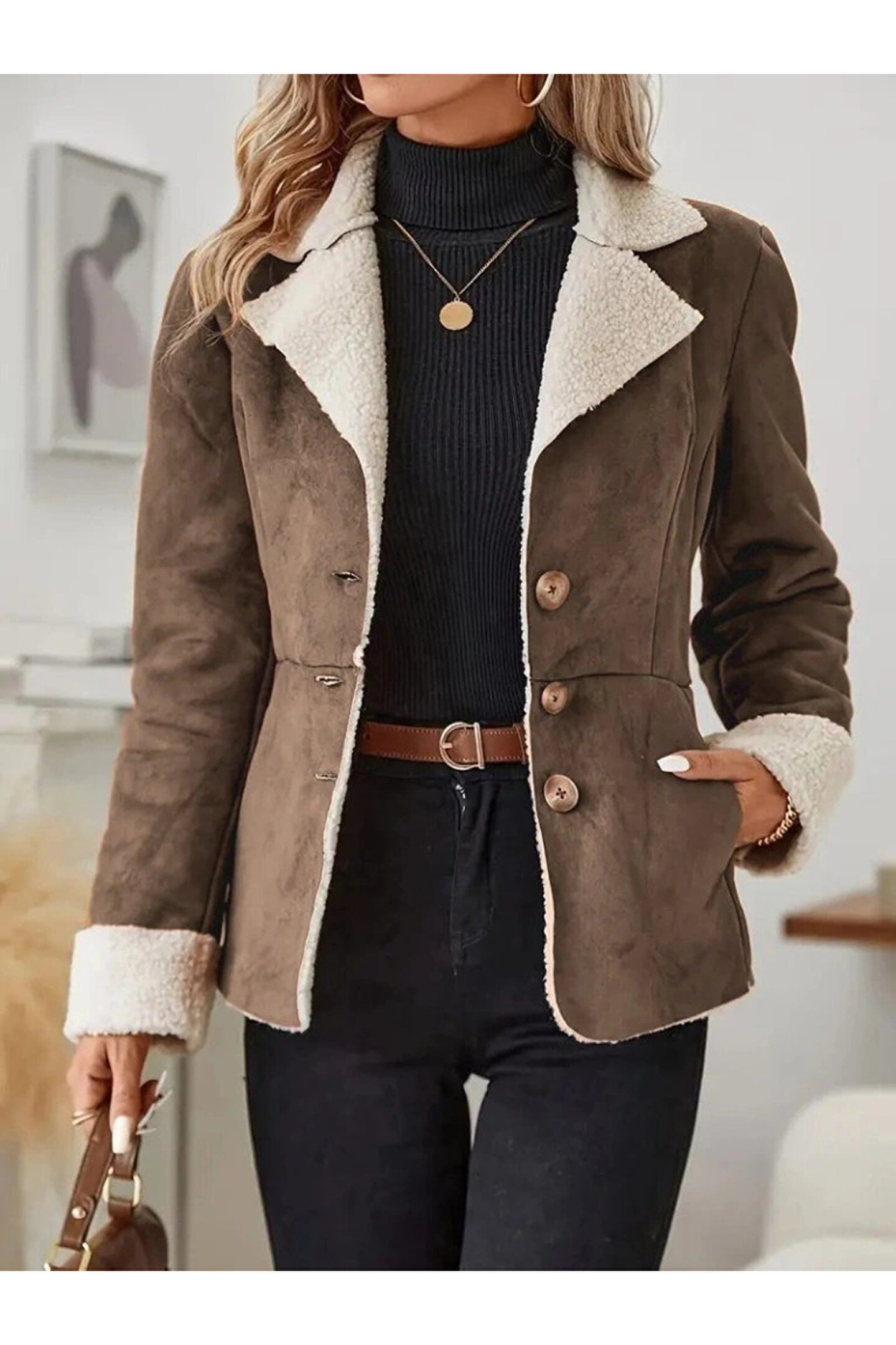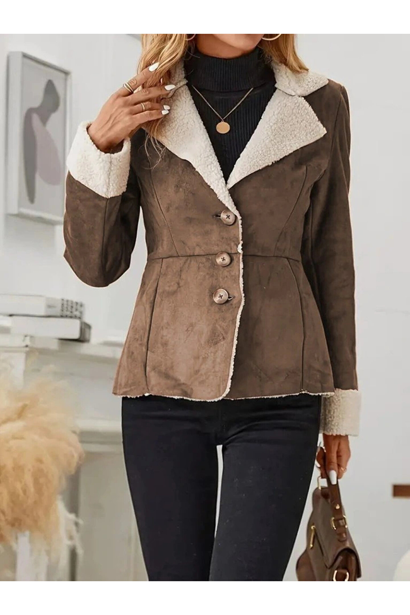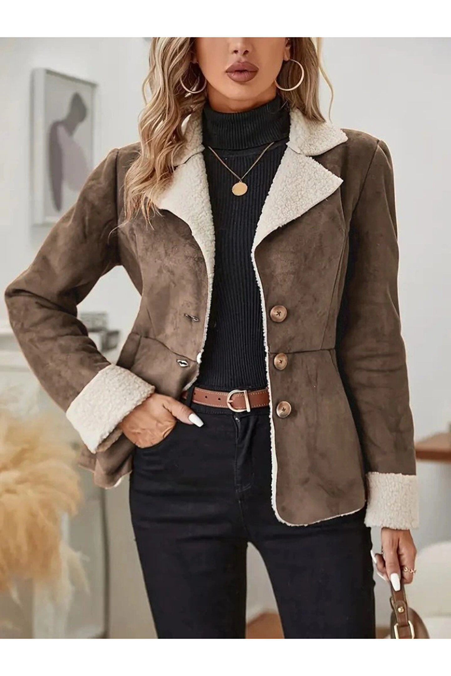 Silerra Kadın Uzun Kollu önden Düğmeli Cep Detaylı Kısa Süet Ceket