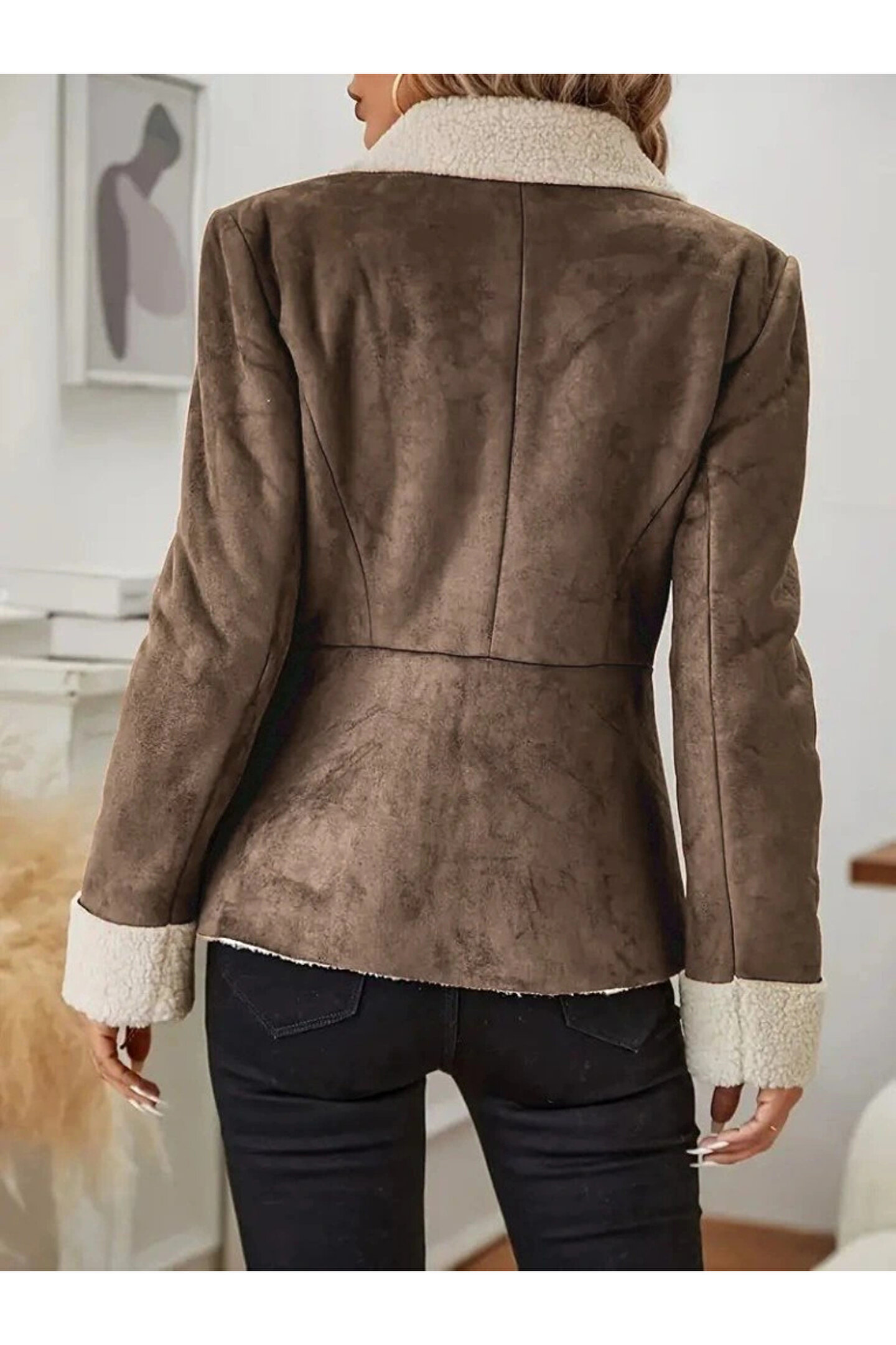 Kadın Uzun Kollu önden Düğmeli Cep Detaylı Kısa Süet Ceket