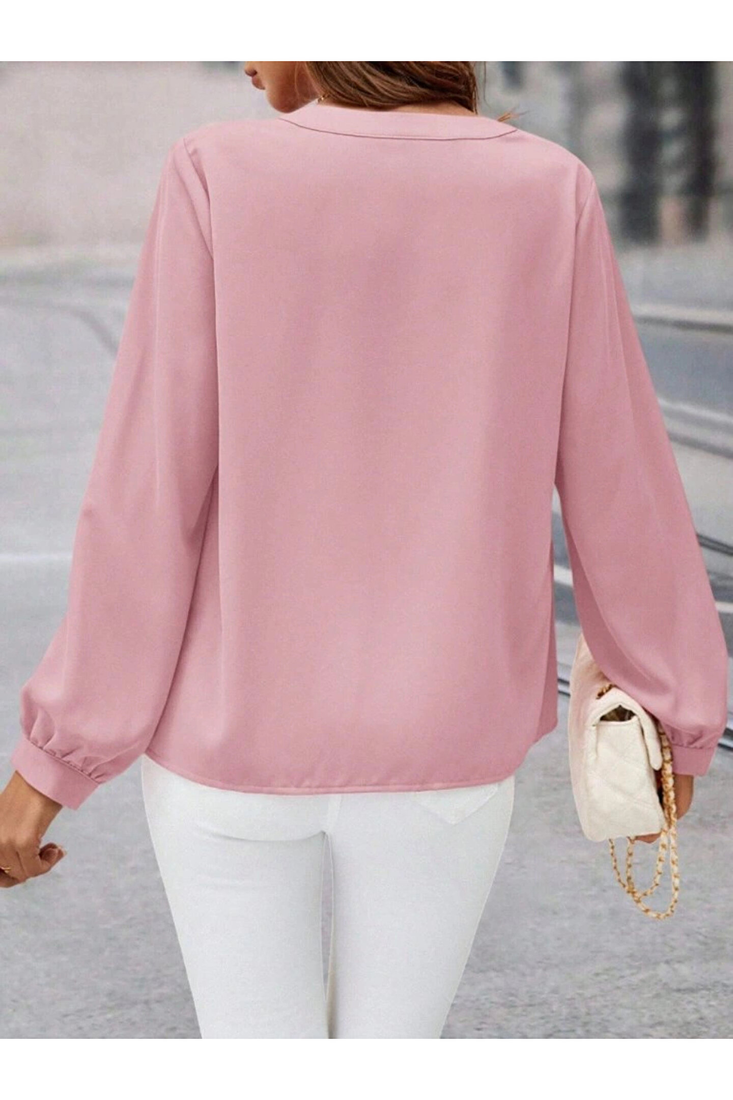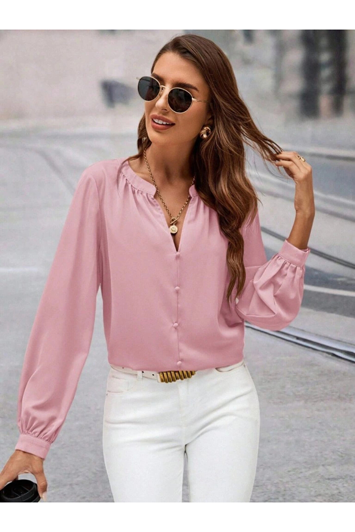 Kadın Uzun Kollu önden Düğmeli Hakim Yaka Ithal Krep Bluz