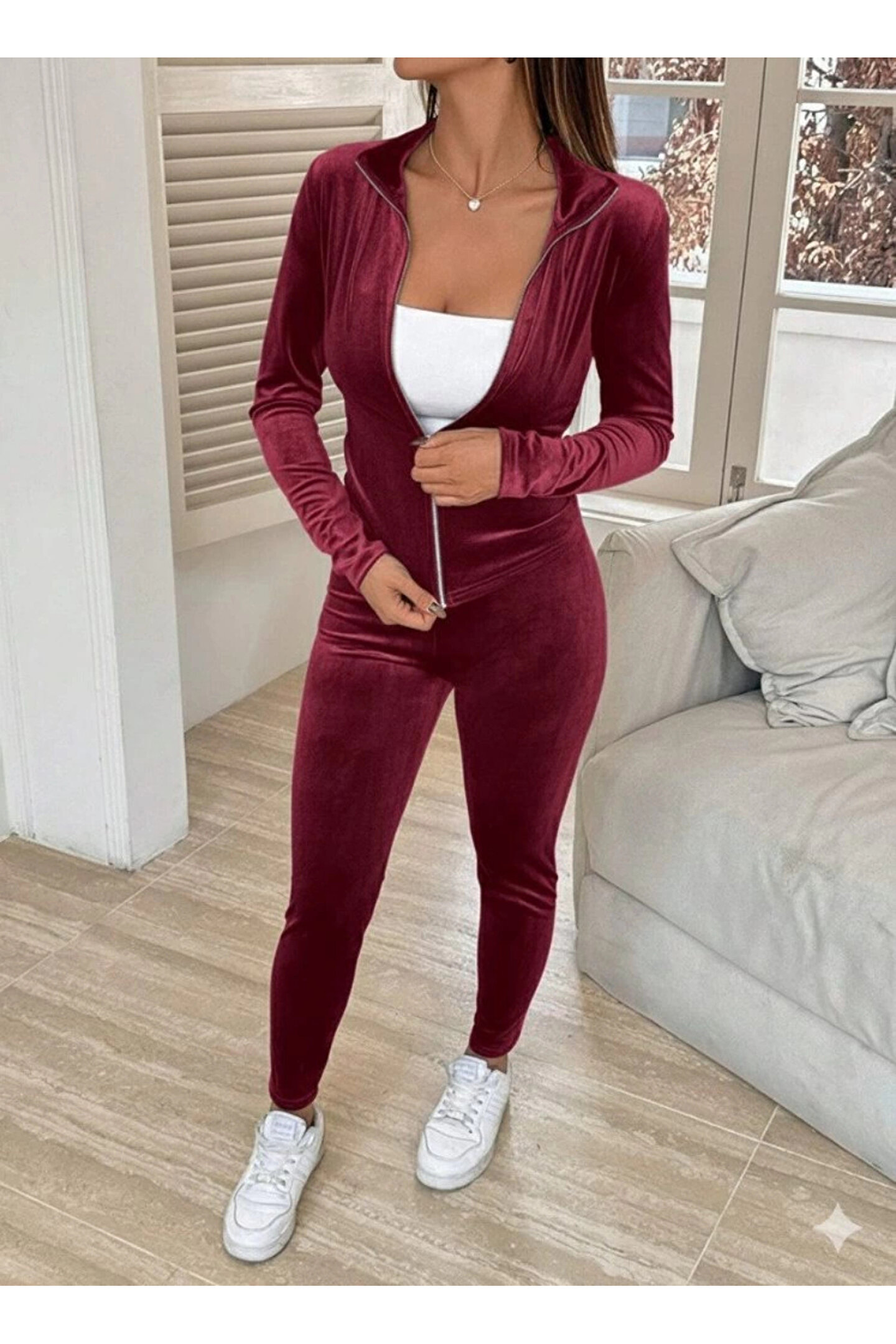 Silerra Kadın Uzun Kollu önden Fermuarlı Kadife Bluz Ve Pantolon Ikili Takım