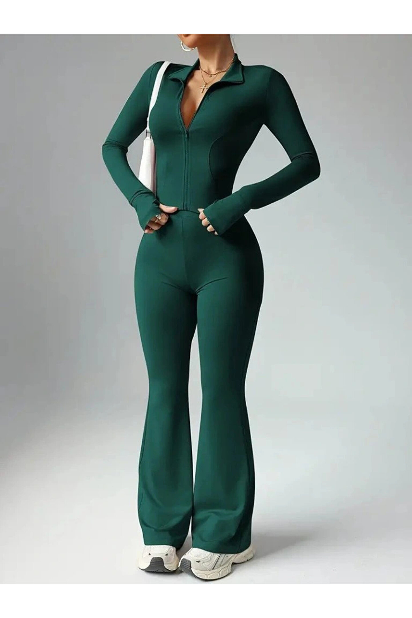Kadın Uzun Kollu önden Fermuarlı Kısa Dalgıç Bluz Ve Pantolon Ikili Takım