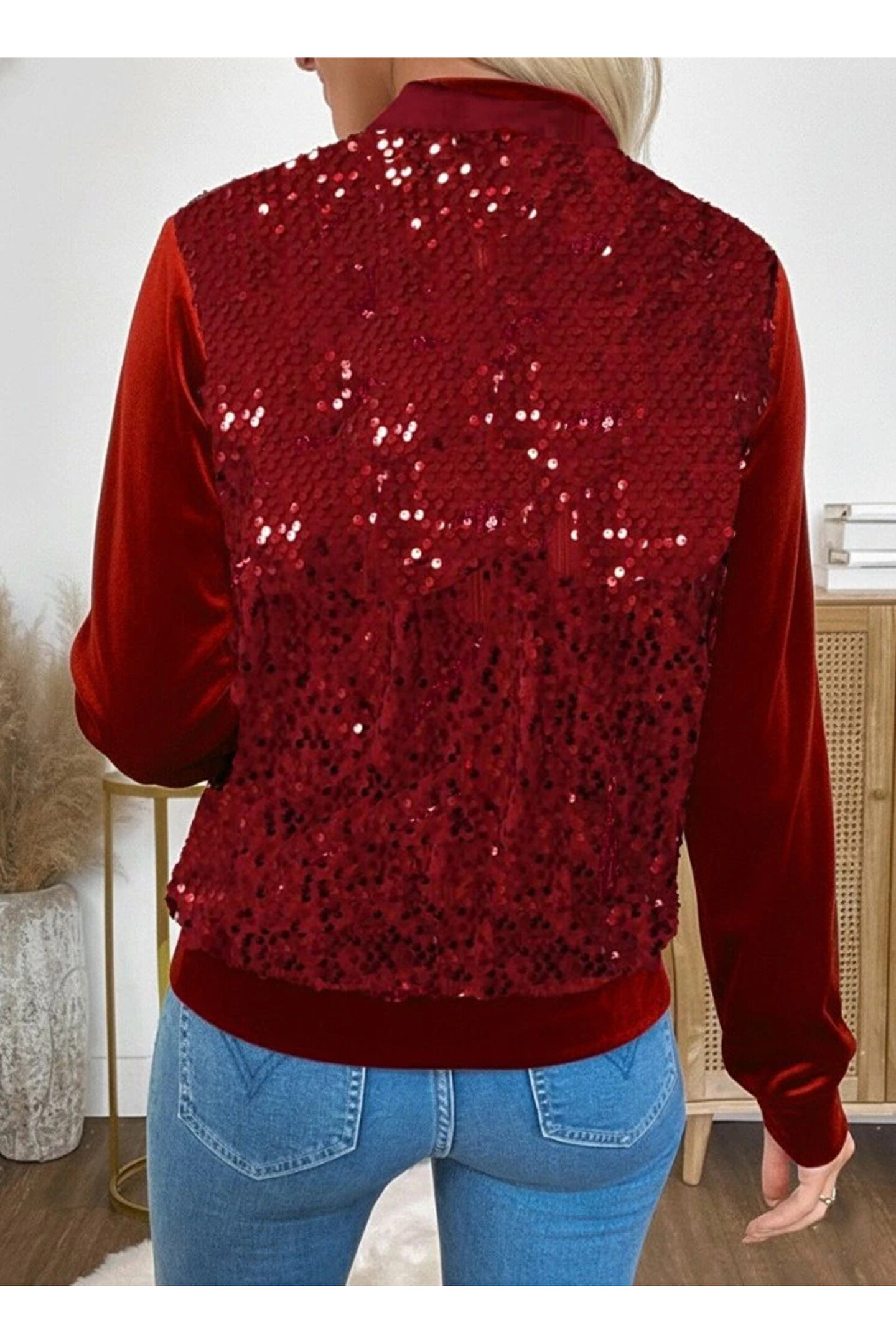 Kadın Uzun Kollu önü Açık Fermuarlı Pulpayetli Kadife Ceket