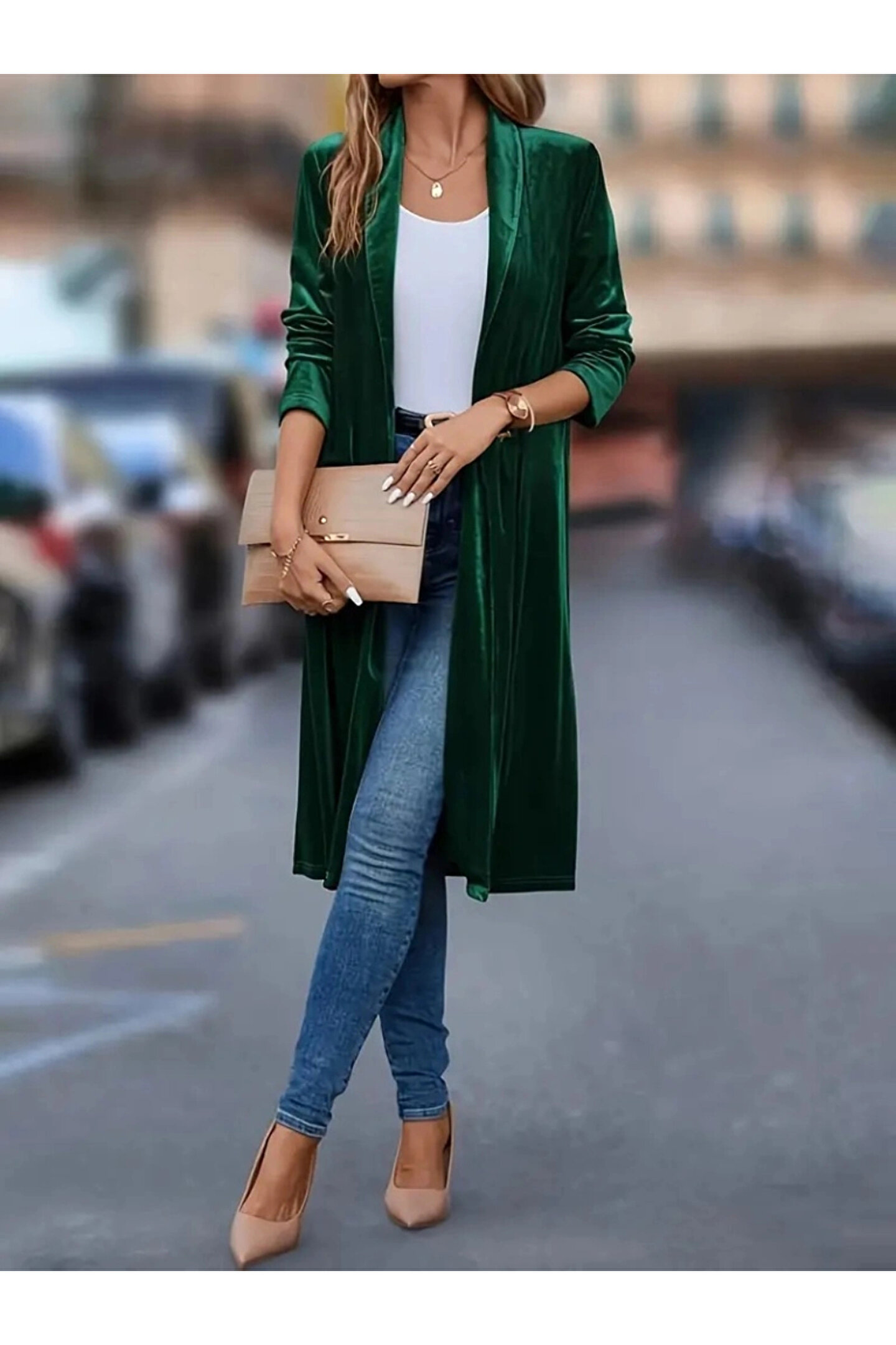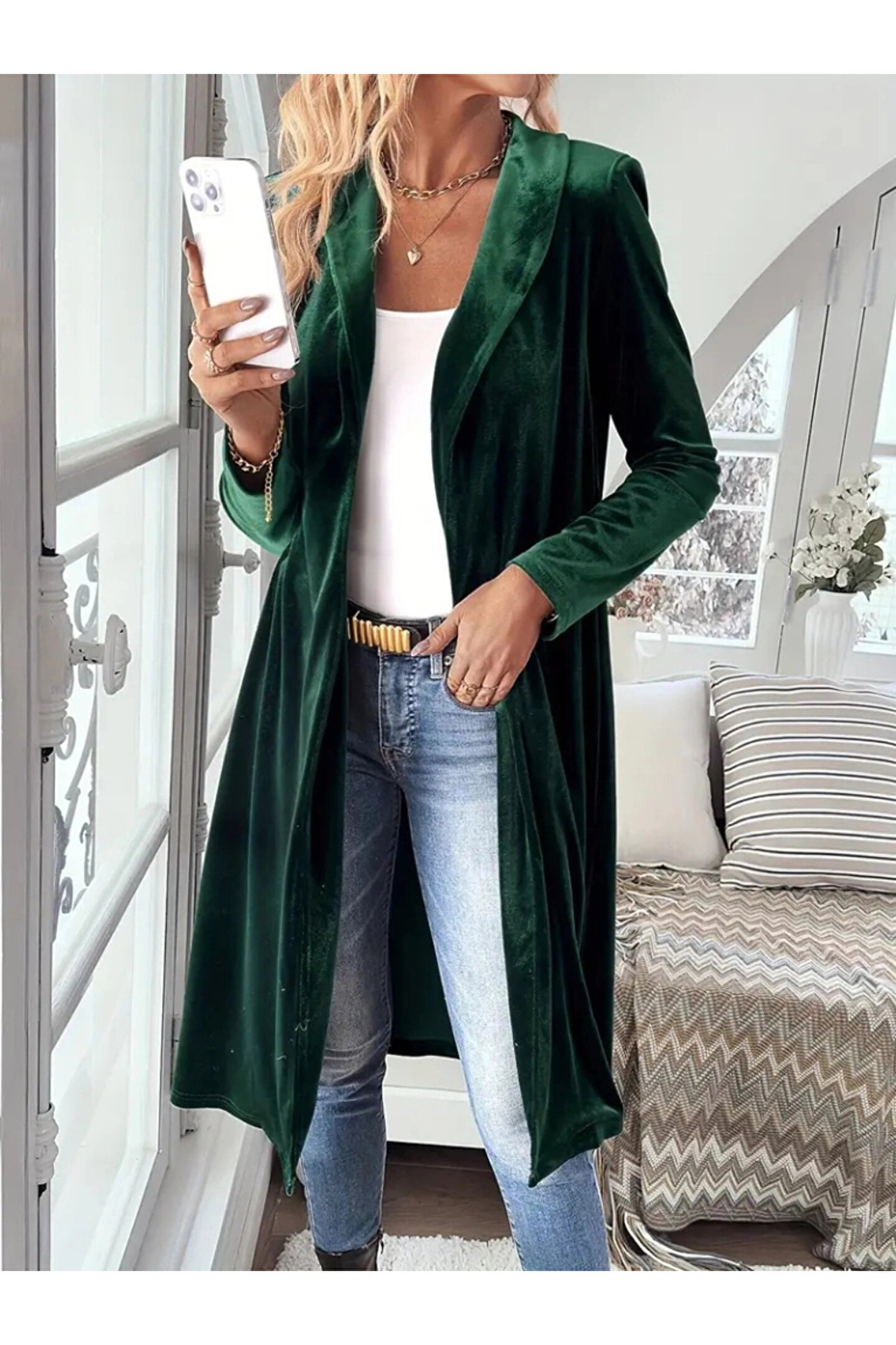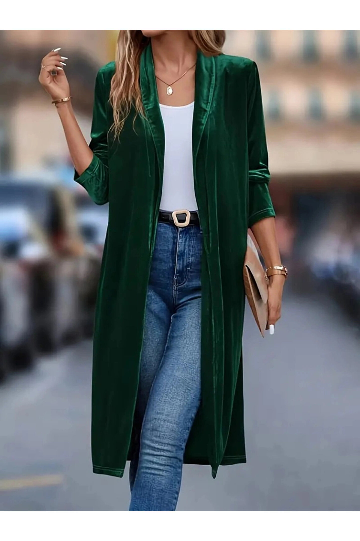 Kadın Uzun Kollu önü Açık Kolları Uzun Midi Ceket