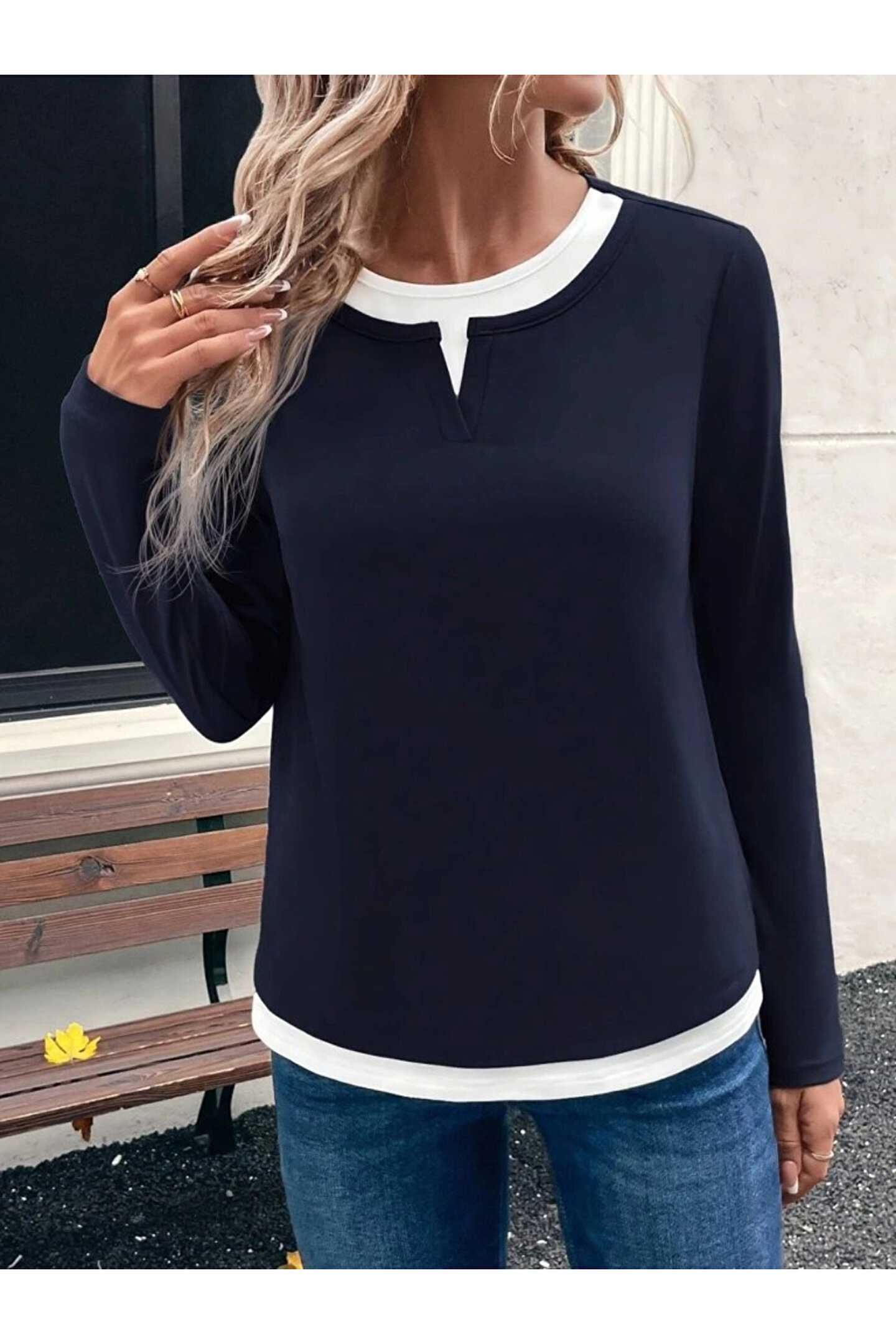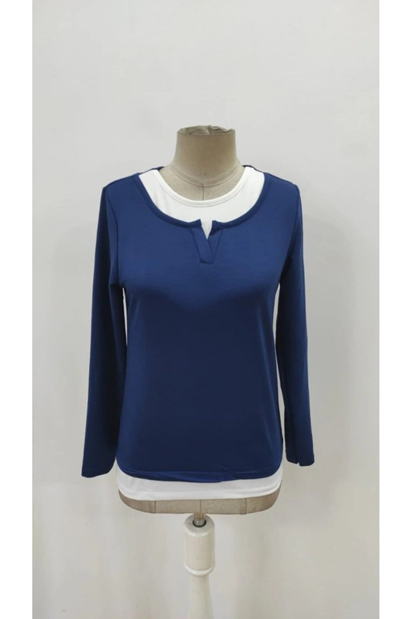 Kadın Uzun Kollu V Yakalı çift Renkli Viskon Iki Iplik Bluz