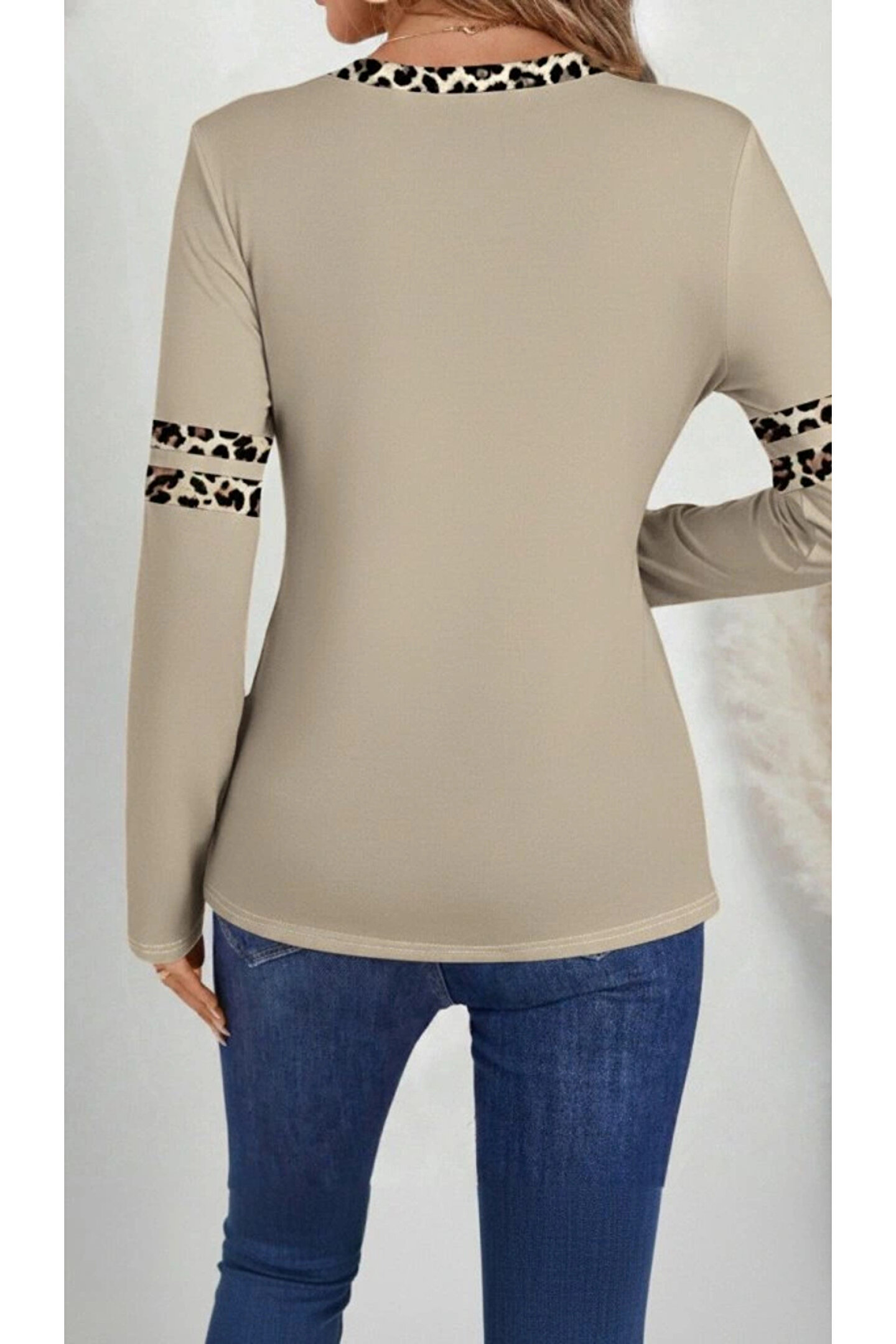 Kadın Uzun Kollu V Yakalı Leopar Desenli Viskon Iki Iplik Bluz