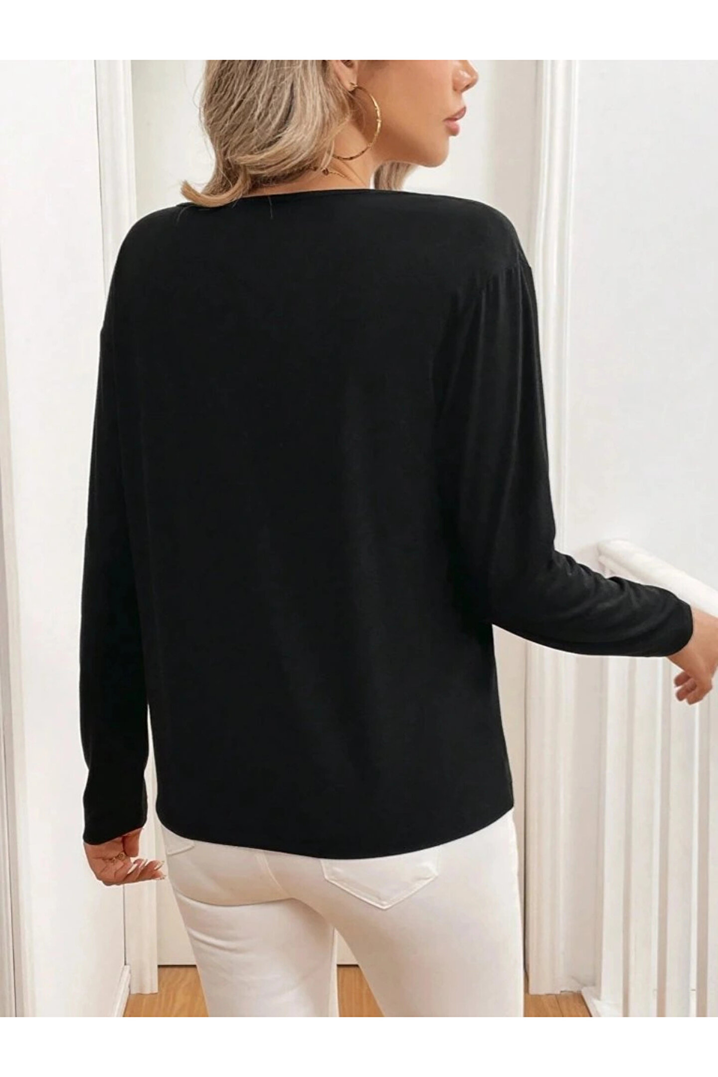 Kadın Uzun Kollu V Yakalı Viskon Iki Iplik Bluz