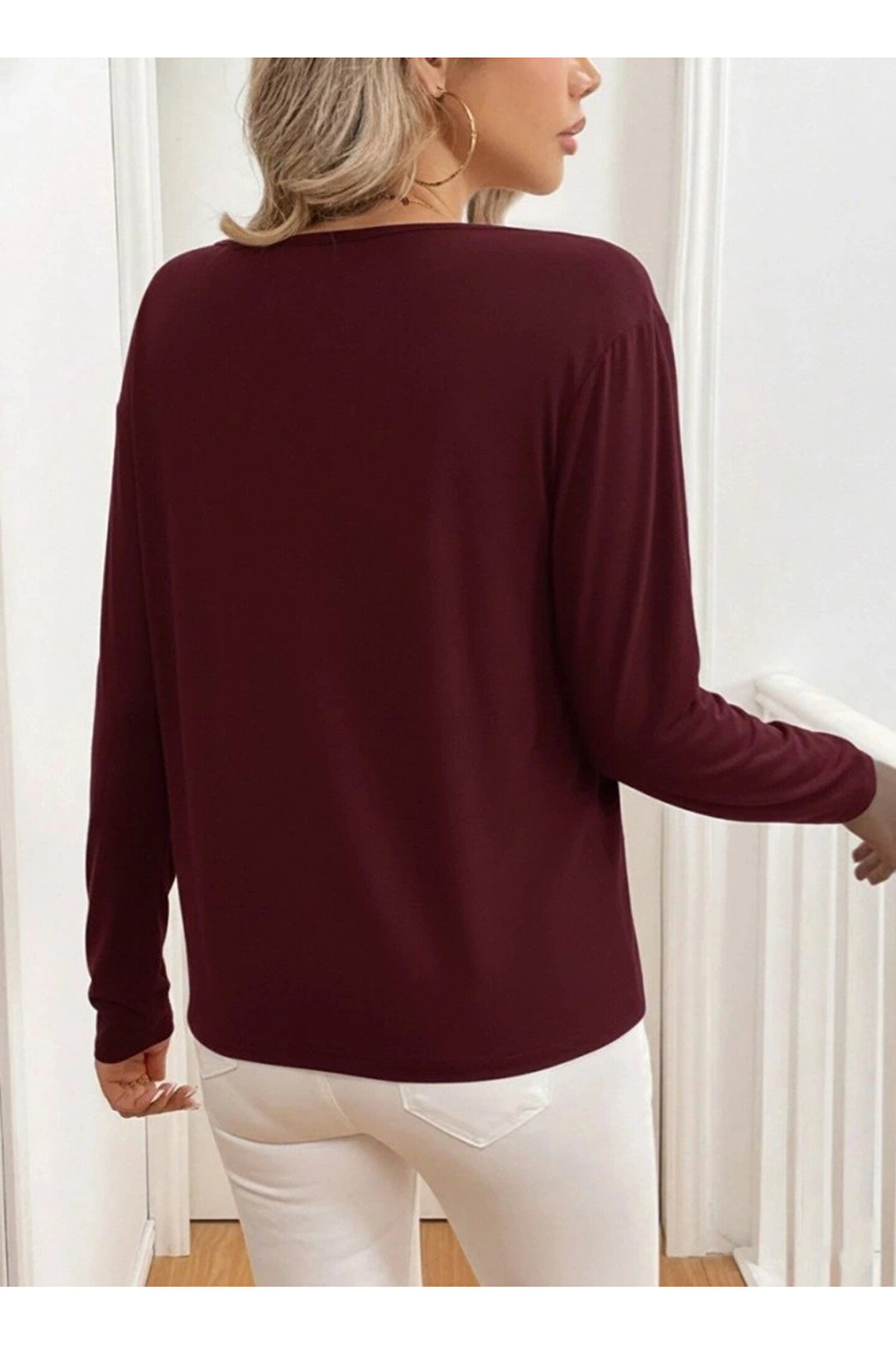 Kadın Uzun Kollu V Yakalı Viskon Iki Iplik Bluz