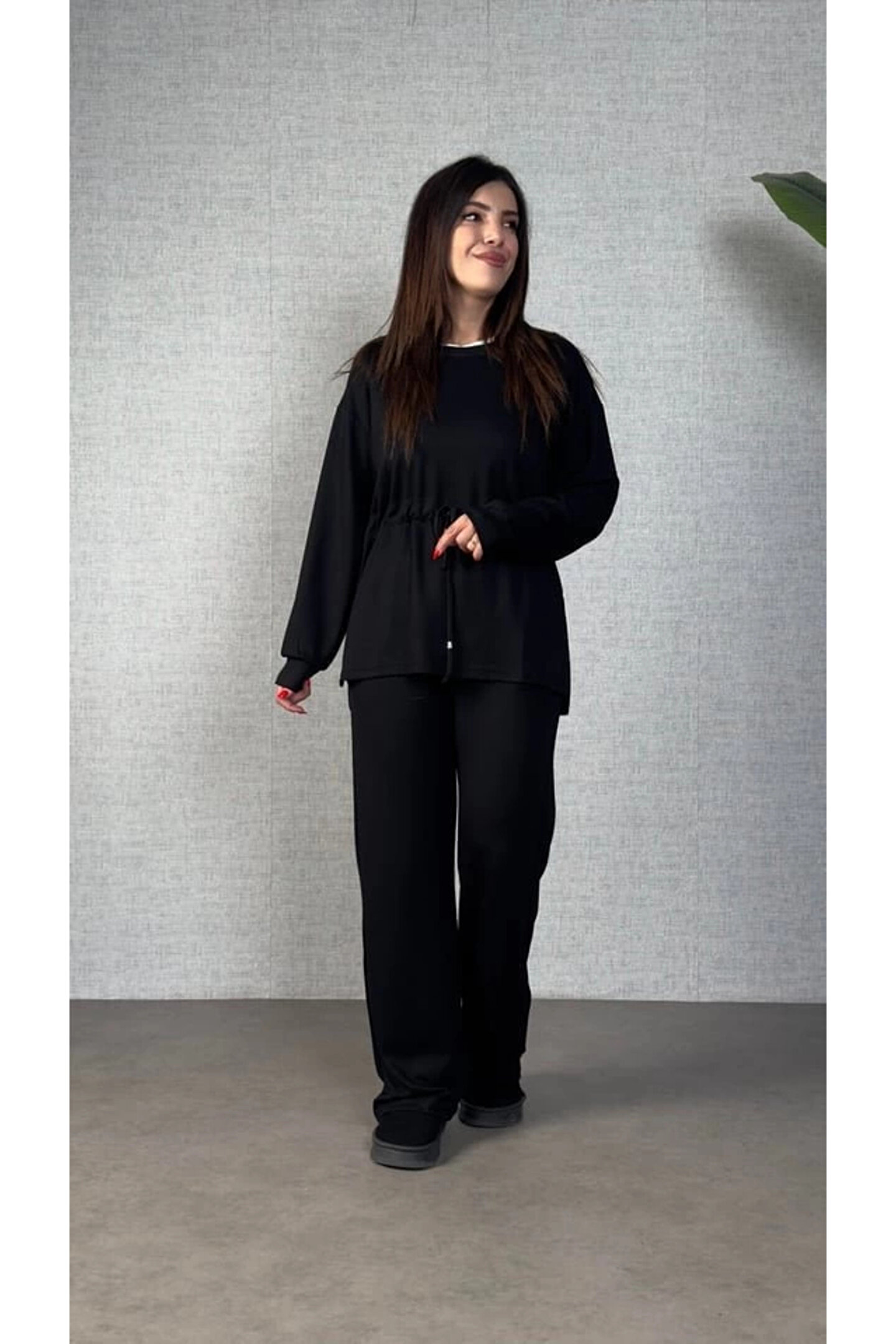 Silerra Kadın Uzun Kollu Yaka Ve Büzgü Detay Tunik Ve Pantolon Ikili Takım
