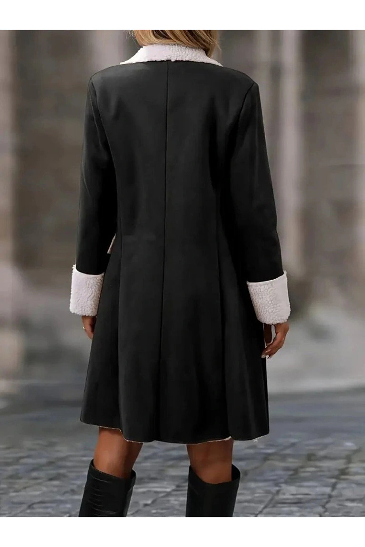 Kadın Uzun Kollu Yakalı Düğmeli Süet Mini Manto