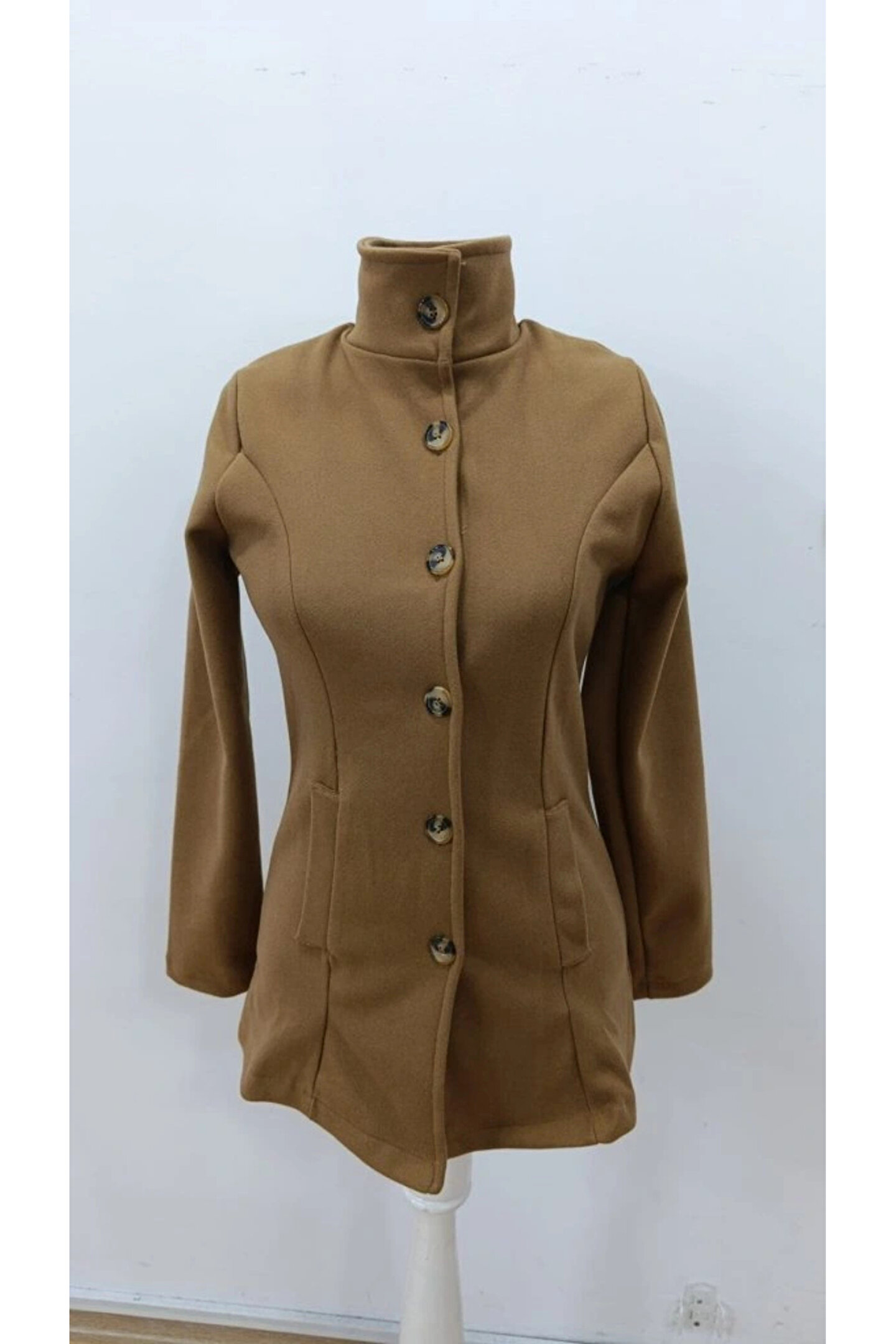 Kadın Uzun Kollu Yakalı önden Düğmeli Astarsız Ithal Kaşe Kahve Kaban