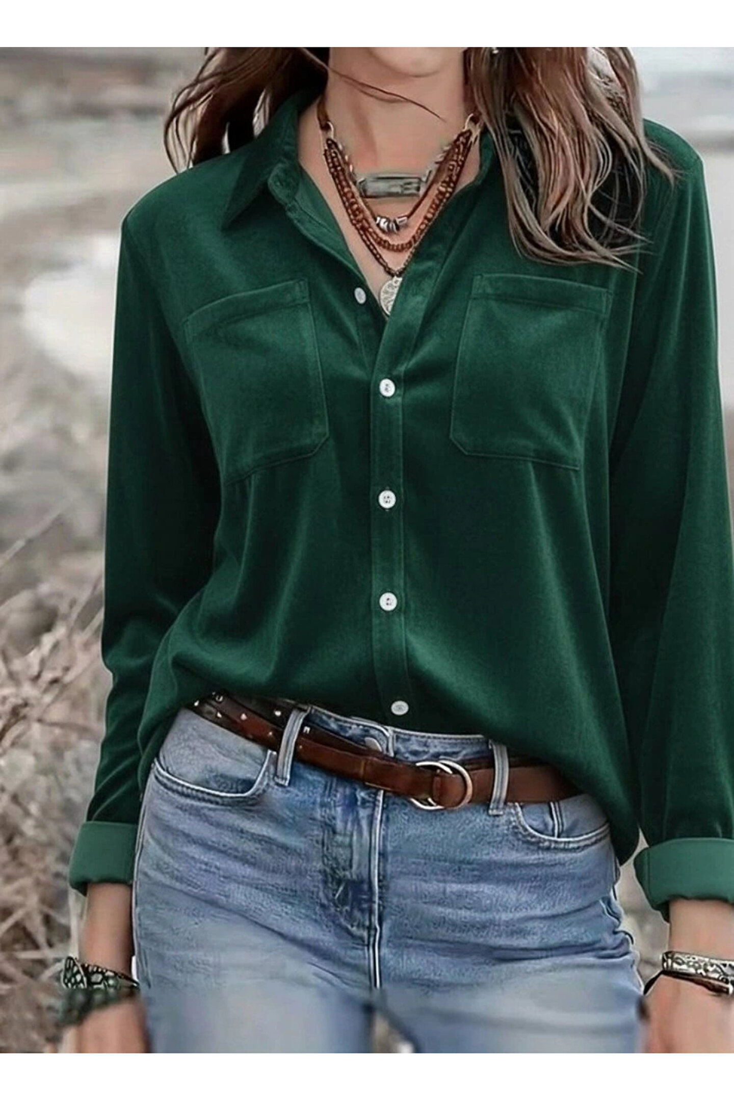 Silerra Kadın Uzun Kollu Yakalı önden Düğmeli Cep Detaylı Kadife Gömlek