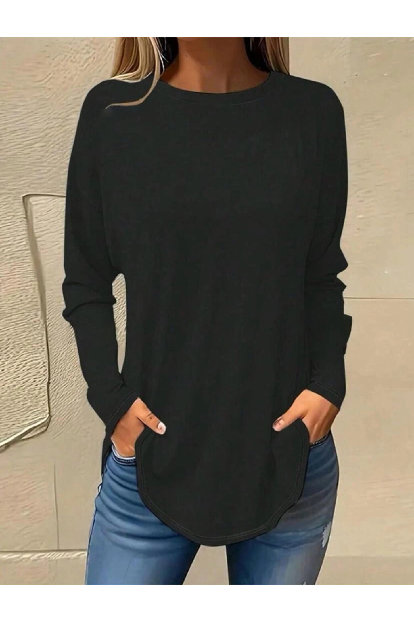 Kadın Uzun Kollu Yuvarlak Yaka Salaş Iki Iplik Bluz