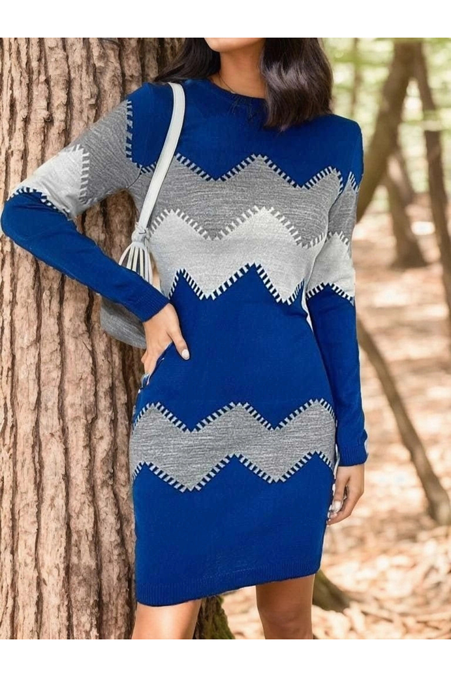 Silerra Kadın Uzun Kollu Zigzag Desen Triko Elbise