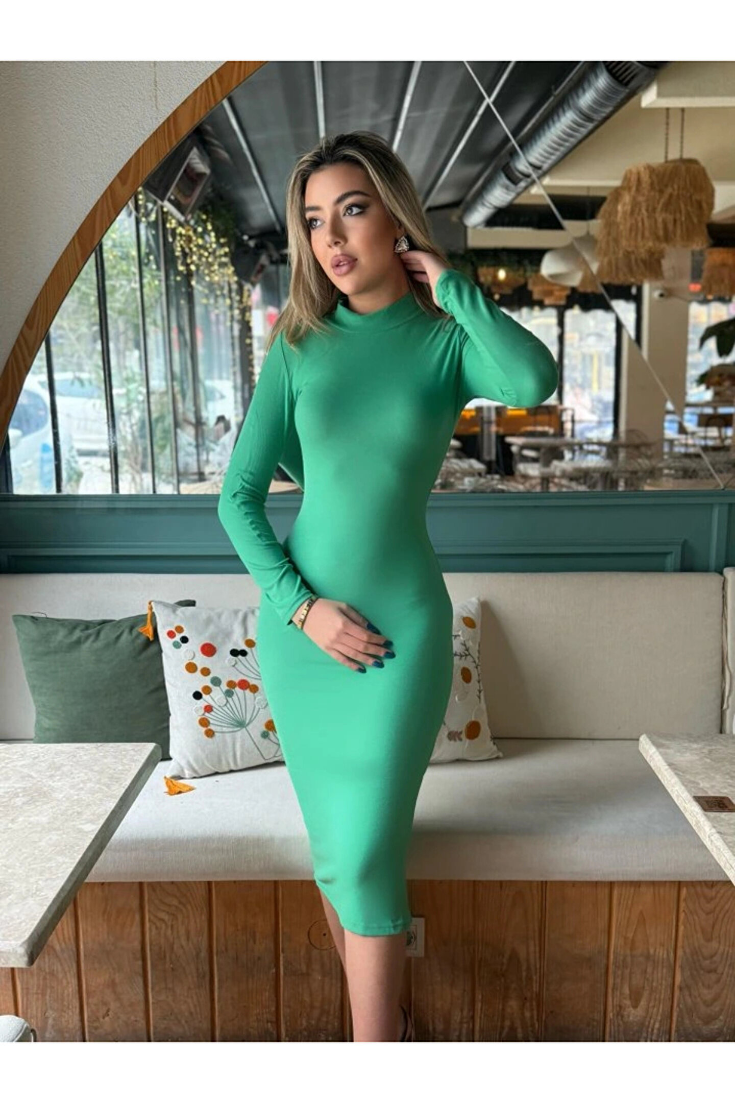 Kadın Yarım Balıkçı Yaka Süet Kumaş Fırsat ürün Midi Boy Elbise