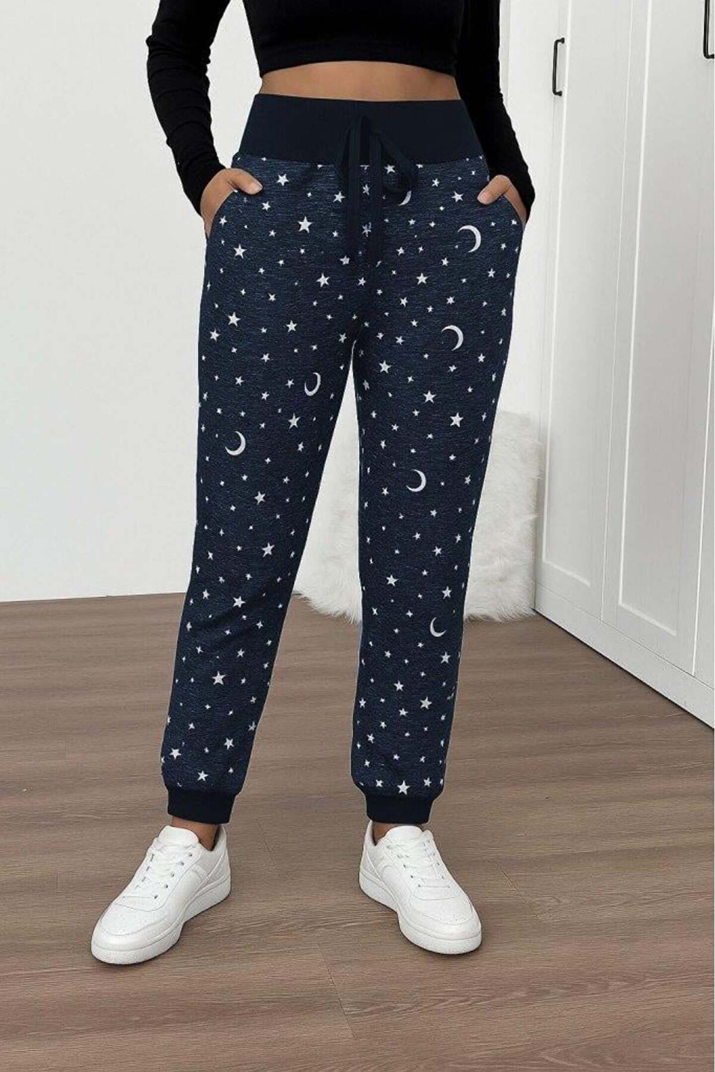 Silerra Kadın Yüksek Bel Bağcıklı Desenli Iki Iplik Pantolon