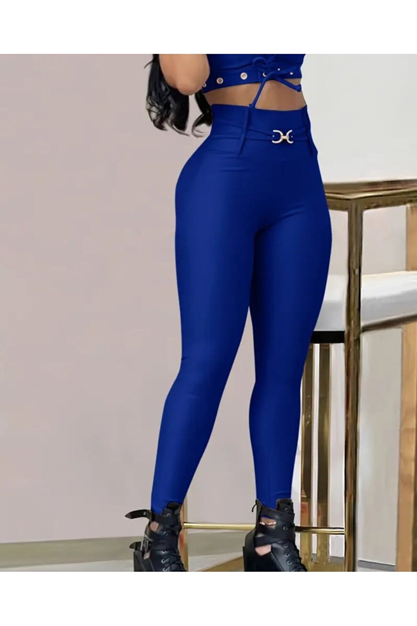 Kadın Yüksek Bel Belden Toka Detaylı Dalgıç Tayt