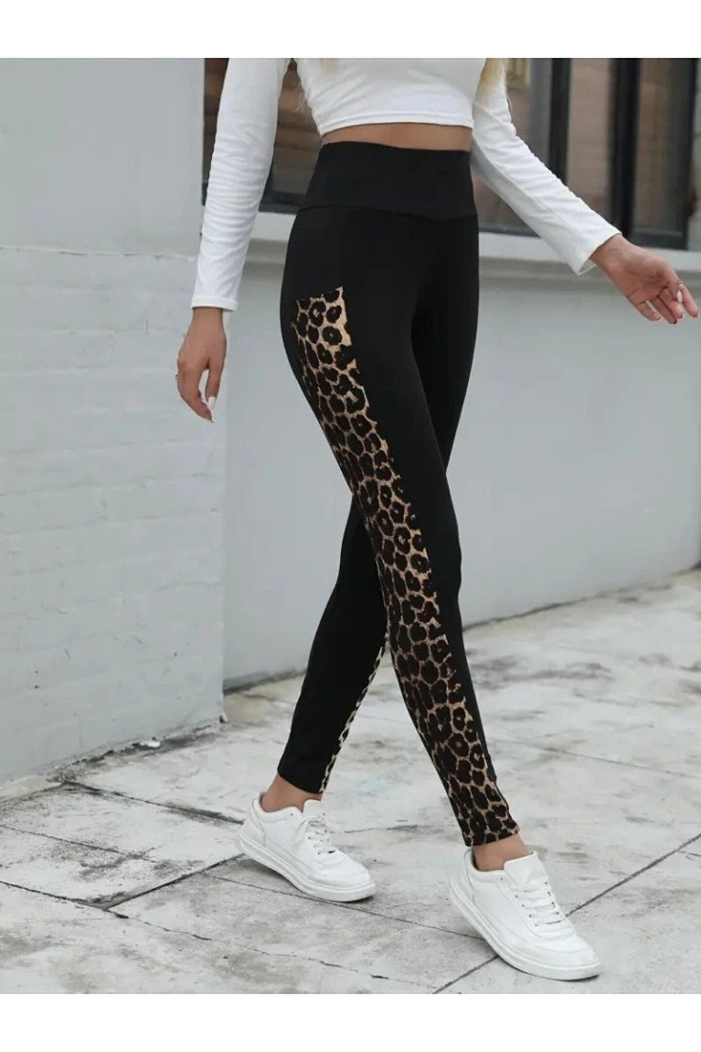 Kadın Yüksek Bel Cep Detaylı Leopar Desenli Dalgıç Tayt